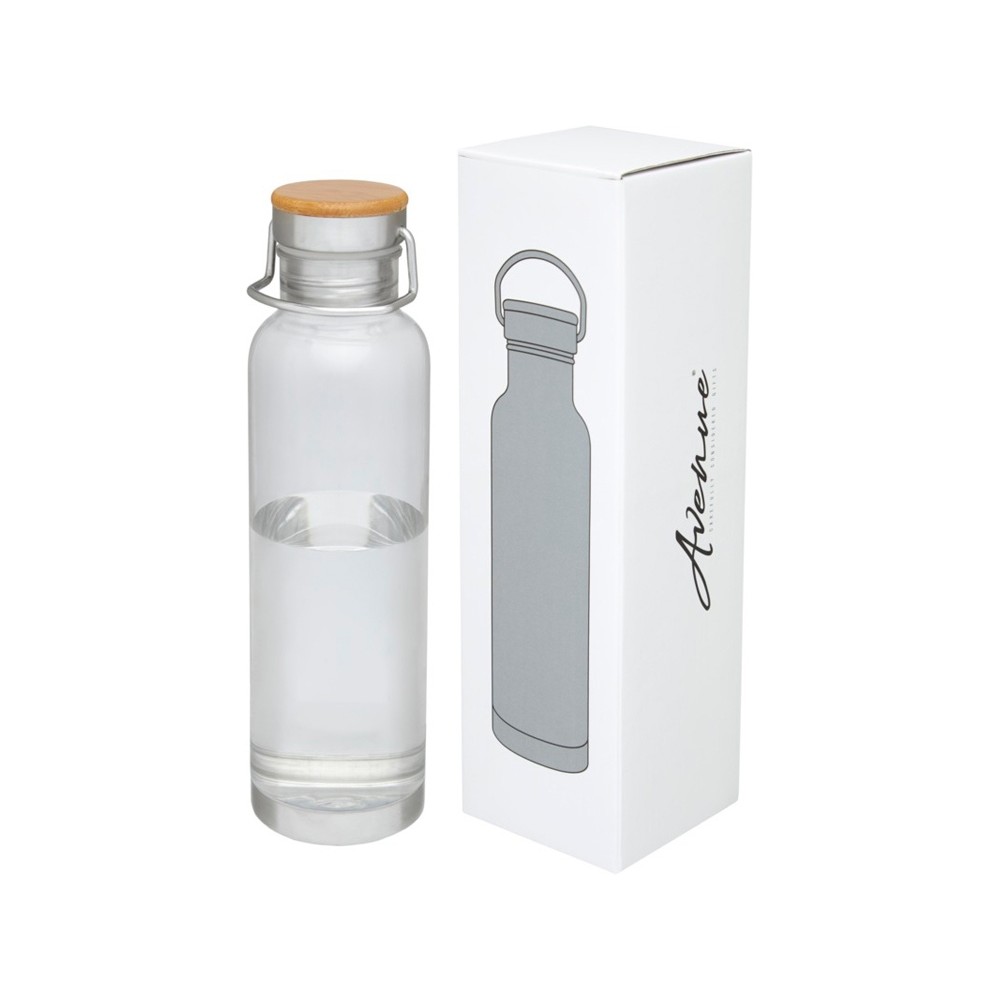 Спортивная бутылка с одинарными стенками из прочного материала от Tritan™. Устойчива к ударам, не пачкается и не пропускает запахи. Имеет съемную крышку с бамбуковым колпачком и ручку для удобной переноски. Без содержания БФА. Объем 800 мл. Представлена в подарочной коробке Avenue.