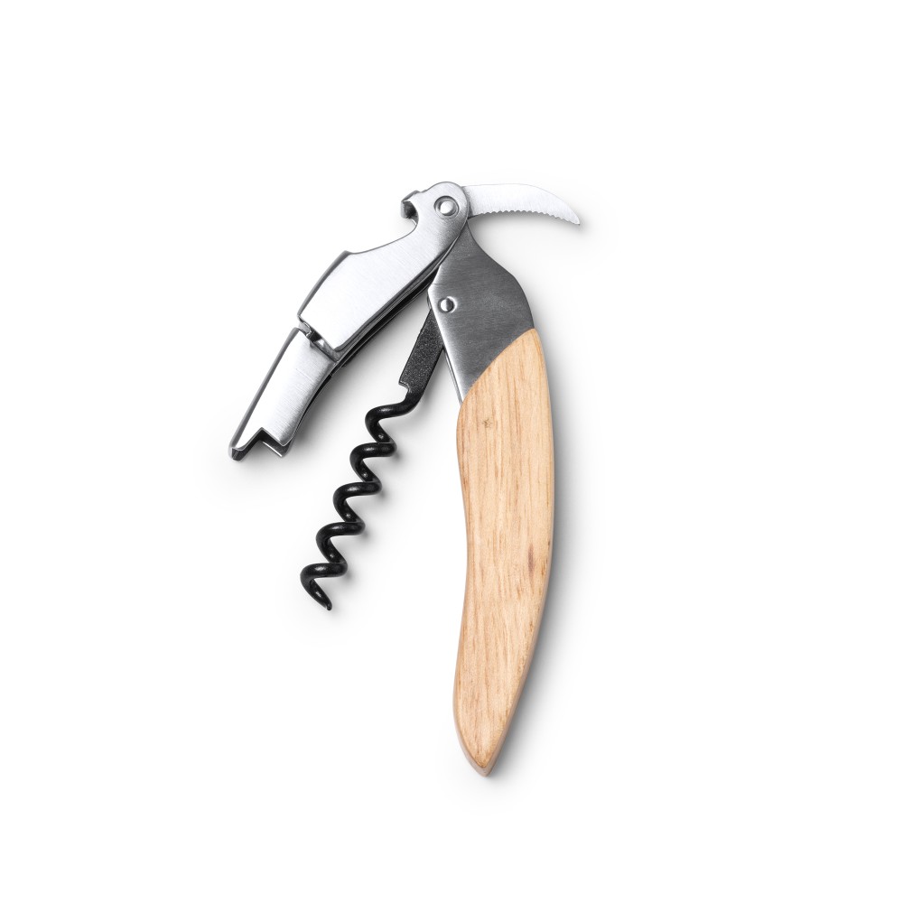 Классический штопор из нержавеющей стали с деревянной ручкой.