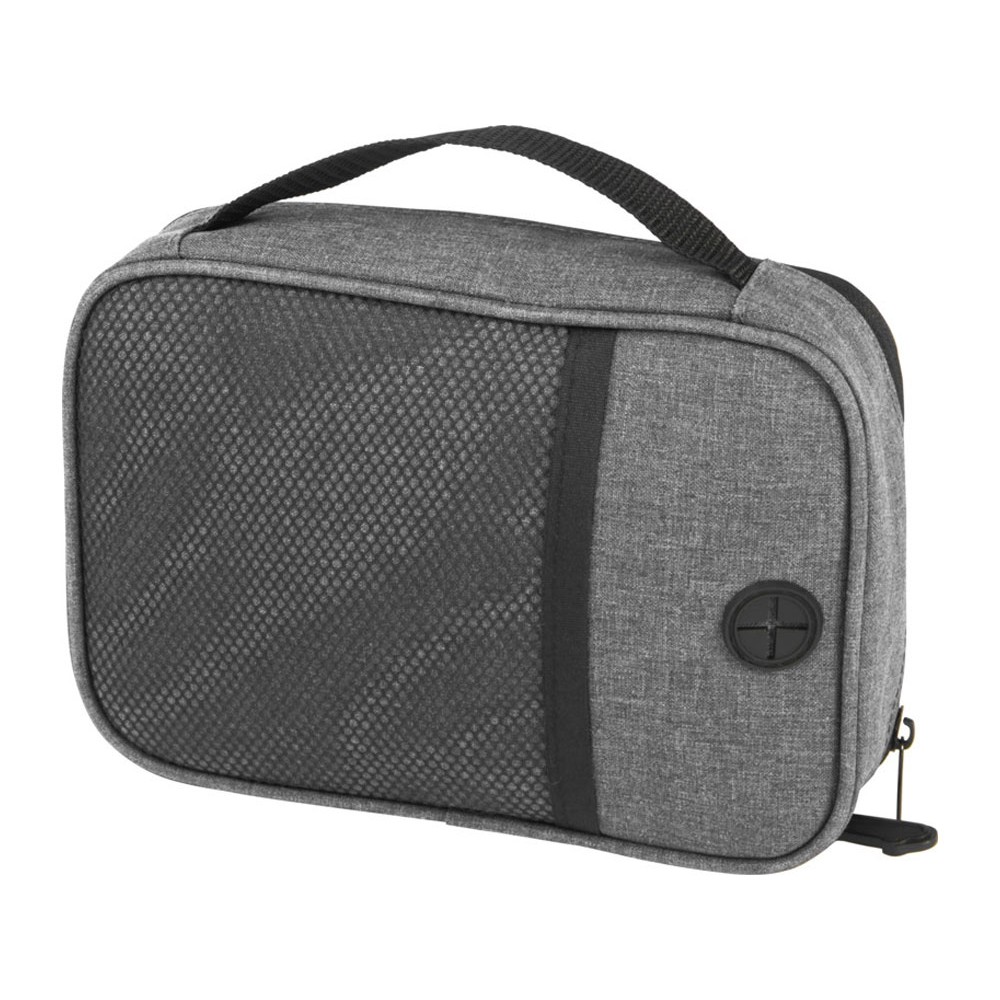 Сумка для техники Ross из переработанного ПЭТ, соответствующего стандарту GRS, идеально подходит для людей, постоянно находящихся в пути, и позволяет организовывать портативные зарядные устройства, зарядные кабели или любые другие электронные аксессуары. Имеет несколько карманов, эластичных петель и вставок для протягивания кабелей, позволяющих заряжать телефон, храня портативное зарядное устройство в сумке. Также имеет пластиковый карабин для крепления к другой сумке. Емкость: 1 литр.