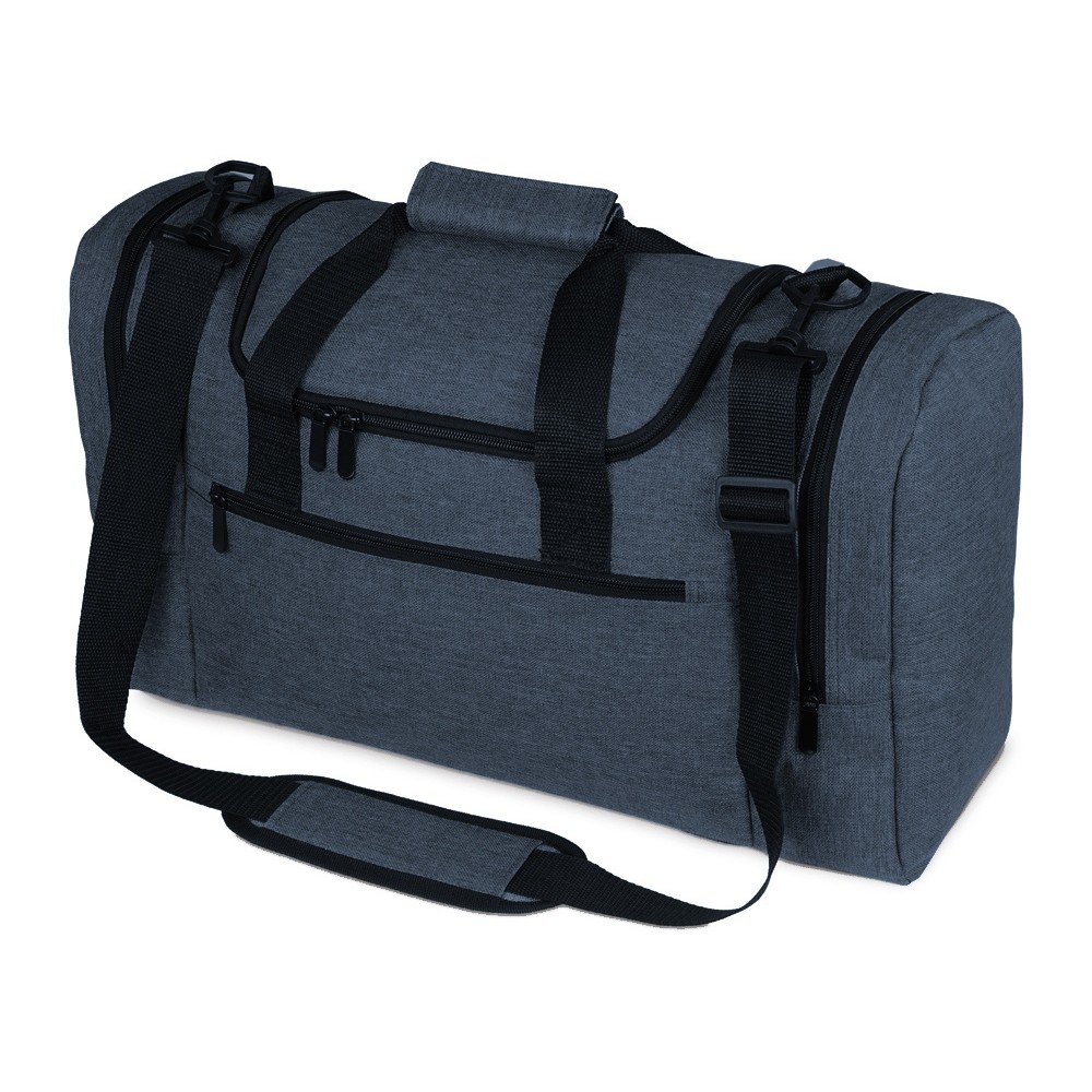Удобная и прочная сумка для путешествий или походов в спортзал. Два вместительных больших кармана на молниях по бокам и один спереди. Сумка сделана из плотной долговечной ткани. Ремень на плечо отстегивается и регулируется по длине.