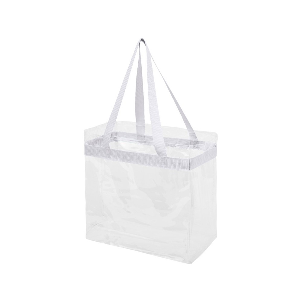 Эта прозрачная сумка отлично подходит для фанатов, которые предпочитают безопасно паковать свои принадлежности для стадиона и мероприятий. Она также подходит для работы и школы. Открытое основное отделение со спортивной сетчатой отделкой и двумя ручками. Высота ручек 27 см. Принадлежности не включены. ПВХ.