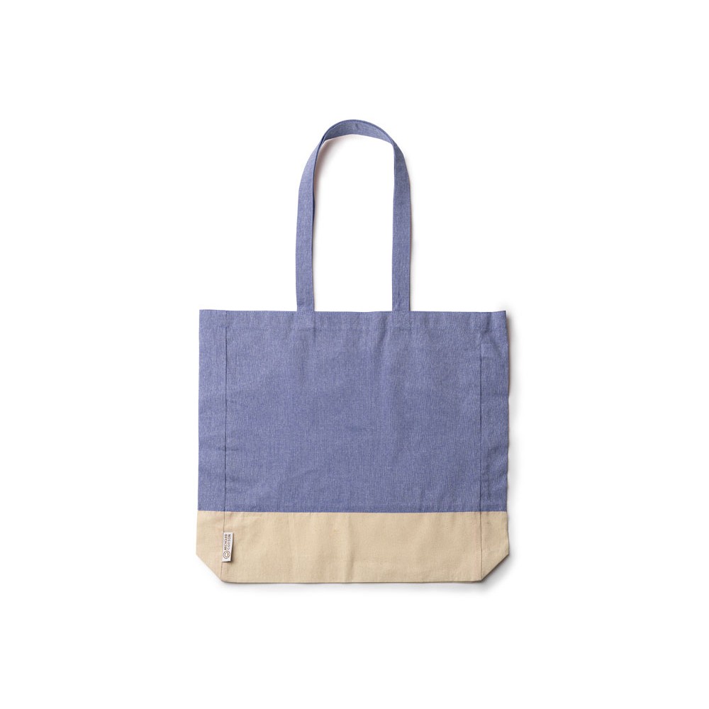 Сумка из переработанного хлопка с отделкой из натурального хлопка плотностью 120 г/м² с донной вставкой. Усиленные ручки длиной 70 см.