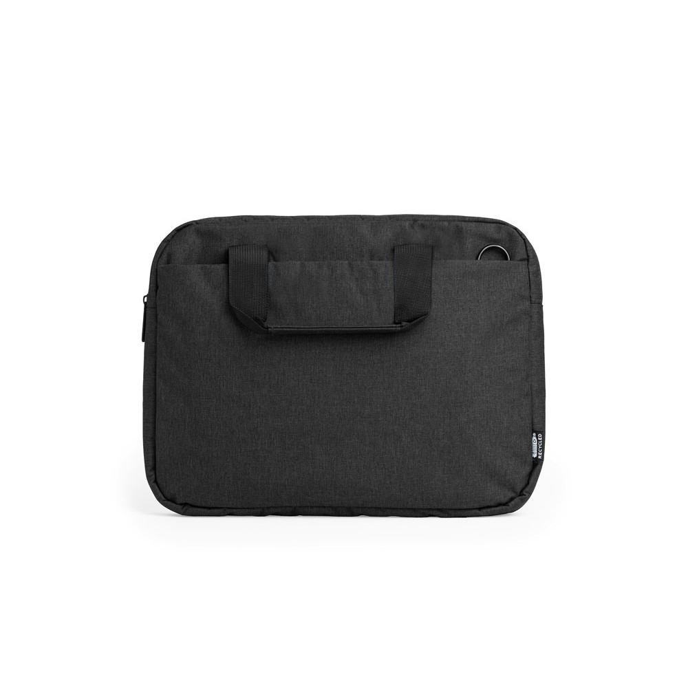 Сумка для ноутбука из переработанного полиэстера 600D RPET с отделкой. Два отделения с водонепроницаемой молнией. Регулируемый плечевой ремень. Возможность крепления на чемодан.