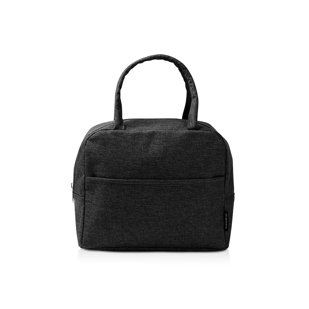 Термосумка из переработанного ПЭТ плотностью 600D с изотермической внутренней поверхностью. Передний карман и мягкие круглые ручки.