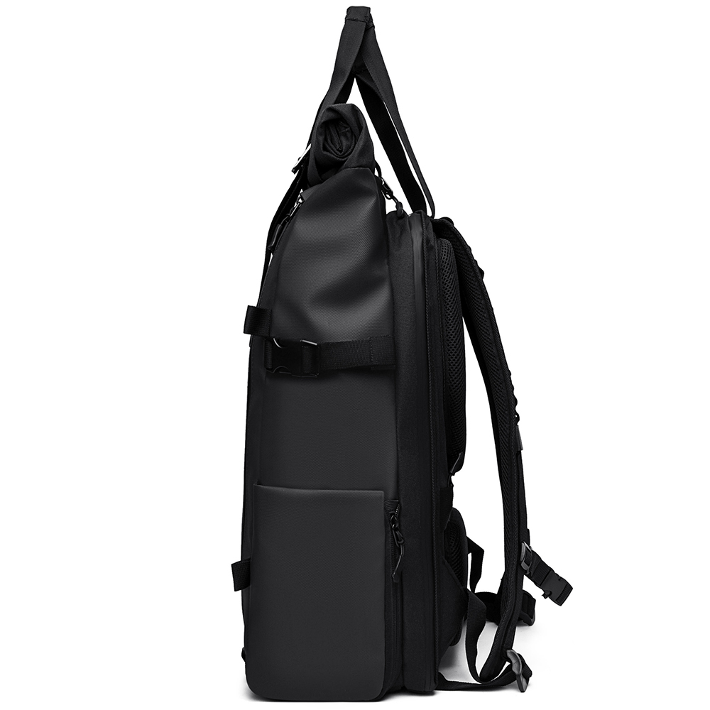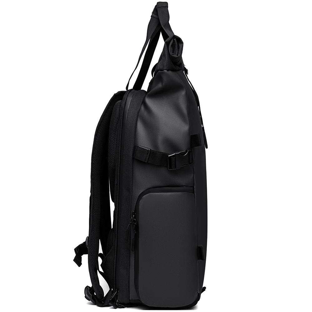 Два боковых кармана значительно расширяют функционал: один на водонепроницаемой молнии со скрытым звеном с карманом-сеткой для мелких гаджетов внутри. Второй, открытый с возможностью увеличения объёма с помощью молнии позволит разместить бутылку, зонт и всё что необходимо для быстрого доступа