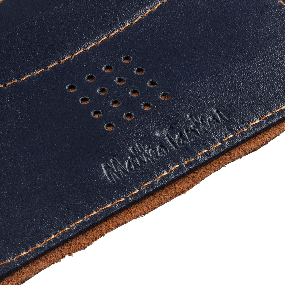 О пляжах Палермо напоминает сочетание глубокого синего и теплого песочного цветов, гладкость кожи и приятная шероховатость замши. Еще один отличительный знак изделий Palermo — перфорация на обратной стороне изделия.