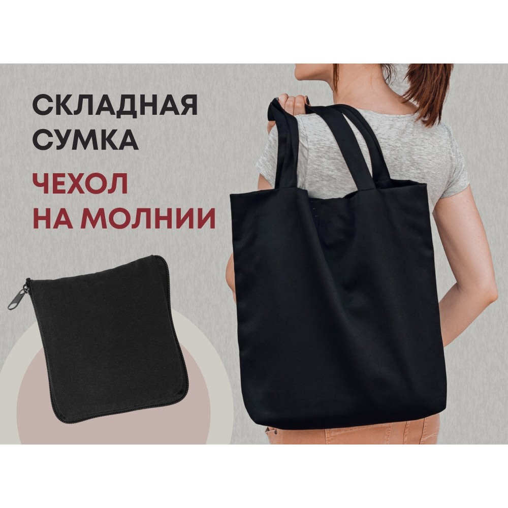 Складывающаяся сумка Skit из хлопка на молнии, черный