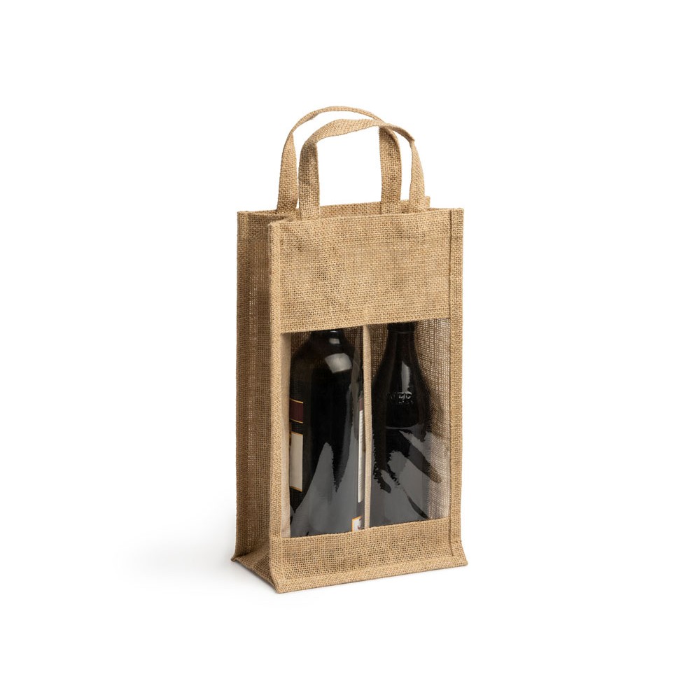 Сумка из ламинированного джута с окошком и двойным отделением. Идеально подходит для бутылок. Усиленные ручки.