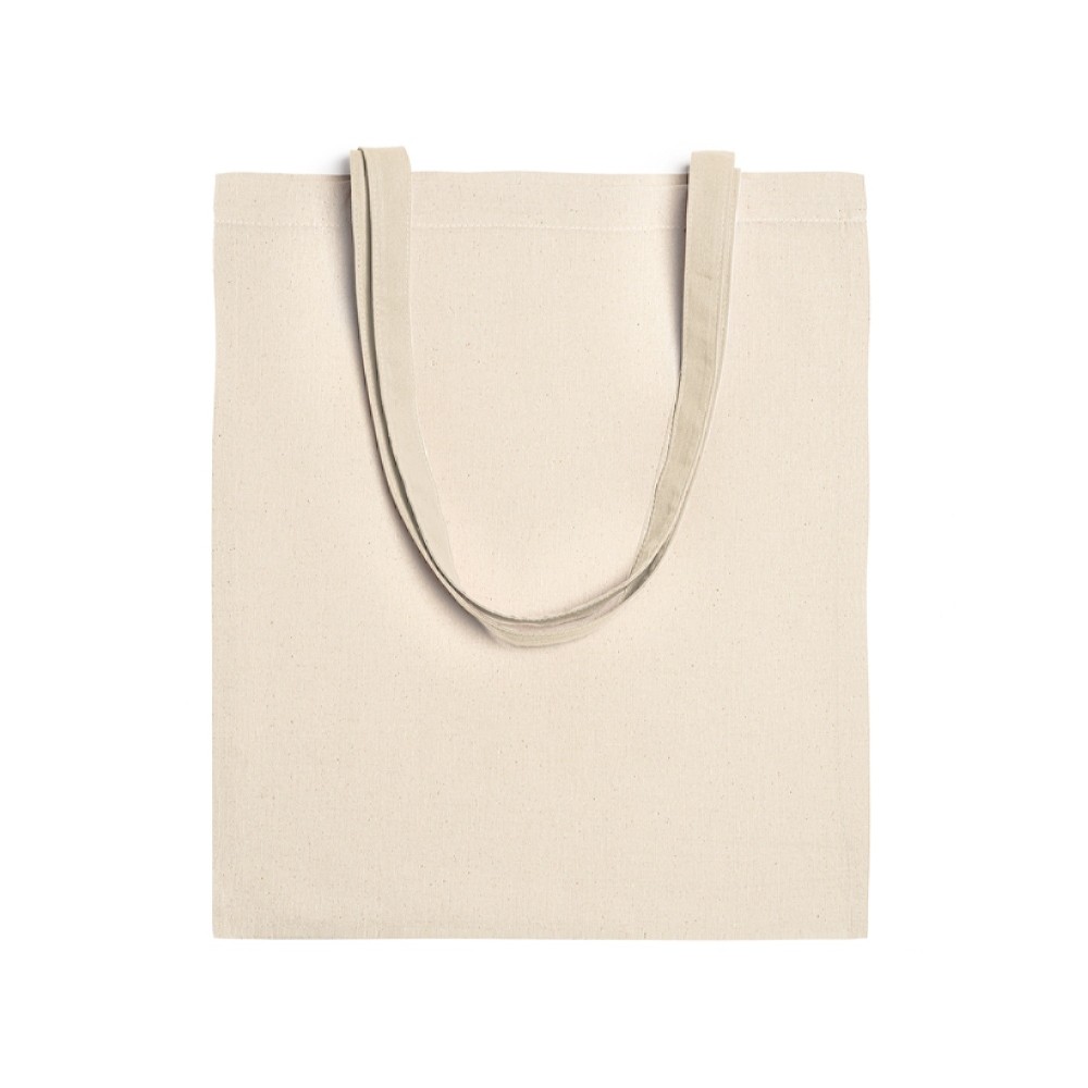 Сумка-тоут из хлопчатобумажной ткани натурального цвета с длинными ручками в тон.
