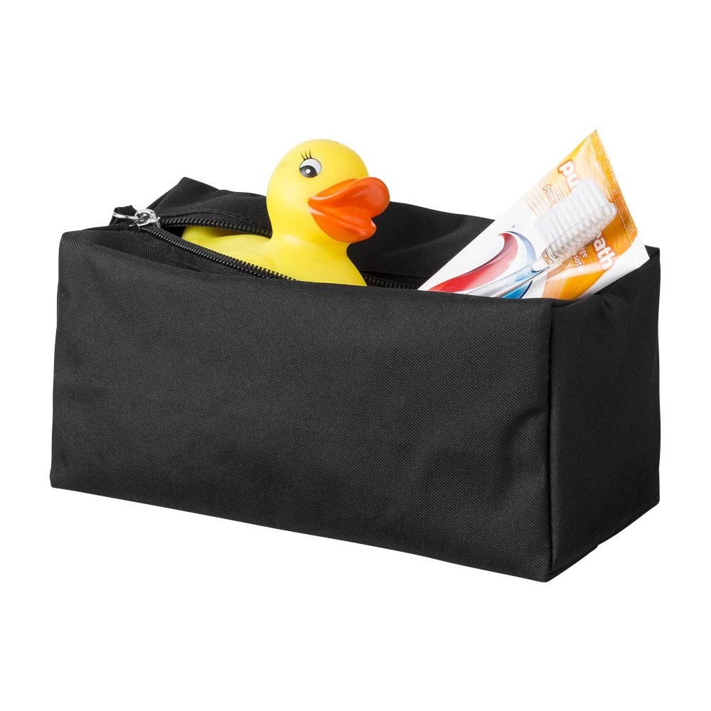 Прямоугольная косметичка с молнией, отлично держит форму. Незаменимый аксессуар для путешествия, похода в спортзал или бассейн.