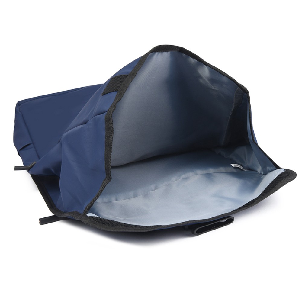 Сбоку вход в уплотнённое отделение на молнии для ноутбука 15 дюймов.
