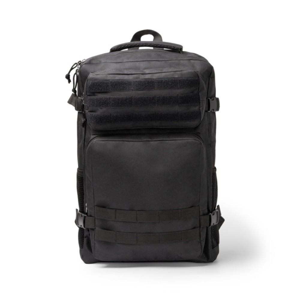 Рюкзак в спортивном стиле из RPET 600D. С передними карманами разных размеров, что обеспечивает большую универсальность для переноски личных вещей. Основное отделение с полным открытием и отделением для ноутбуков до 17". Боковые регулировочные ремни и сетчатые карманы для бутылок, а также несколько точек для крепления дополнительных предметов. Мягкая спинка и плечевые ремни.
