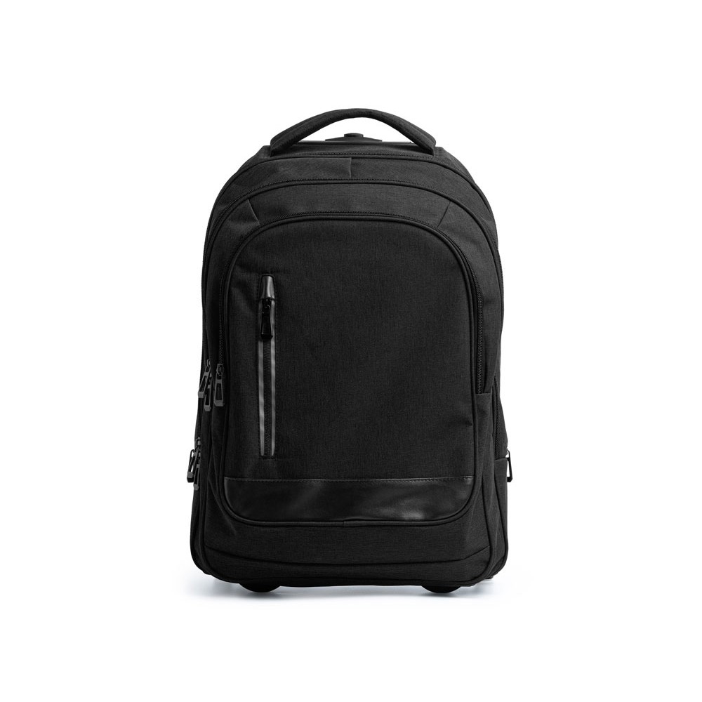 Рюкзак на колесиках. Изготовлен из полиэстера 300D. Большое основное отделение с мягким внутренним карманом идеально подходит для ноутбука с диагональю до 17 дюймов. Два кармана внутри и передний карман. Высококачественная прочная конструкция. Регулируемые мягкие ремни. Грязеотталкивающие чехлы на колеса.