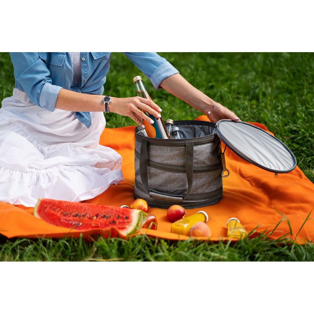 Складная сумка-холодильник с водонепроницаемой подкладкой из ПЭВА. Верхний карман на молнии.