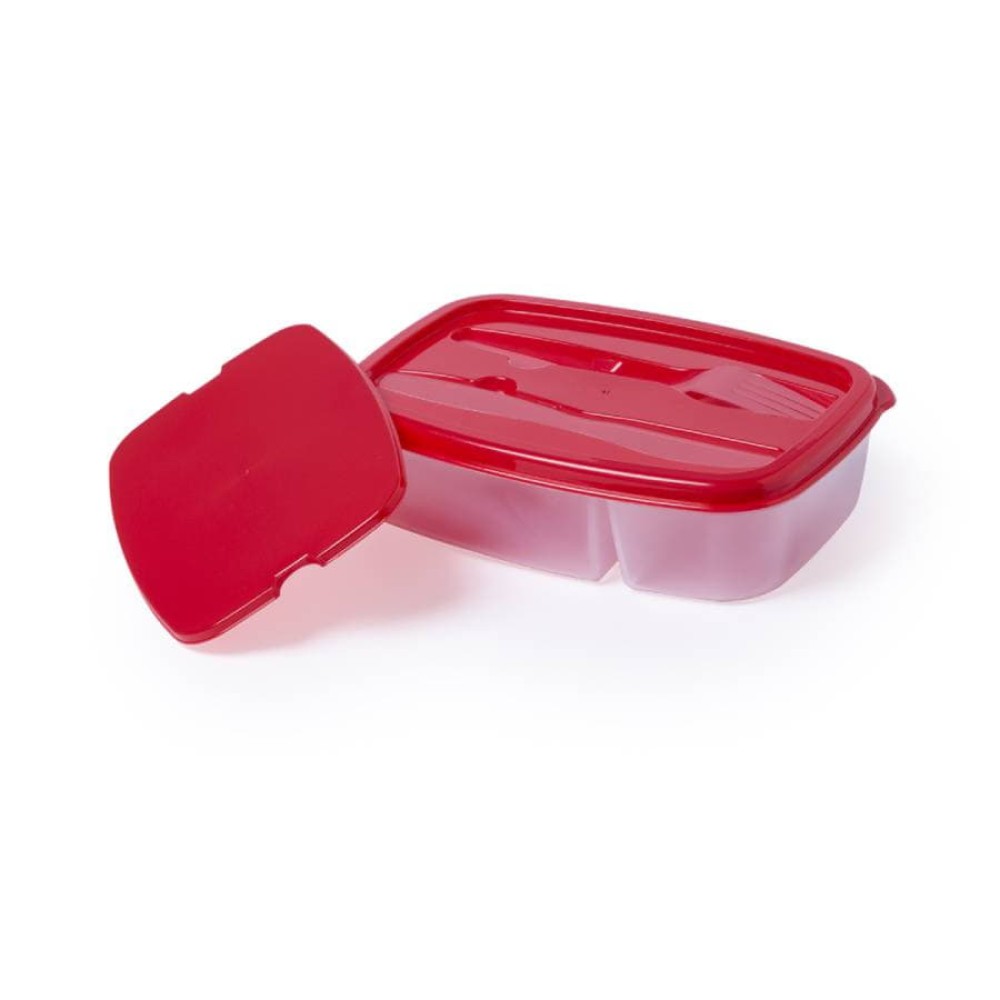 Термосумка "домик"с широким дном, застежкой на липе и прочной нейлоновой ручкой, из полиэстера 600D и изотермической внутренней отделкой из алюминияПрозрачное окошко для вкладывания бейджа на оборотной сторонеКонтейнер в цвет, для пищевых продуктов, не содержащий BPAВ дополнительном отделении крышки контейнера скрепятся нож и вилка из пластика в цвет крышки.Контейнер ёмкостью 1,6 л состоит из большого и маленького отделений для разных продуктов