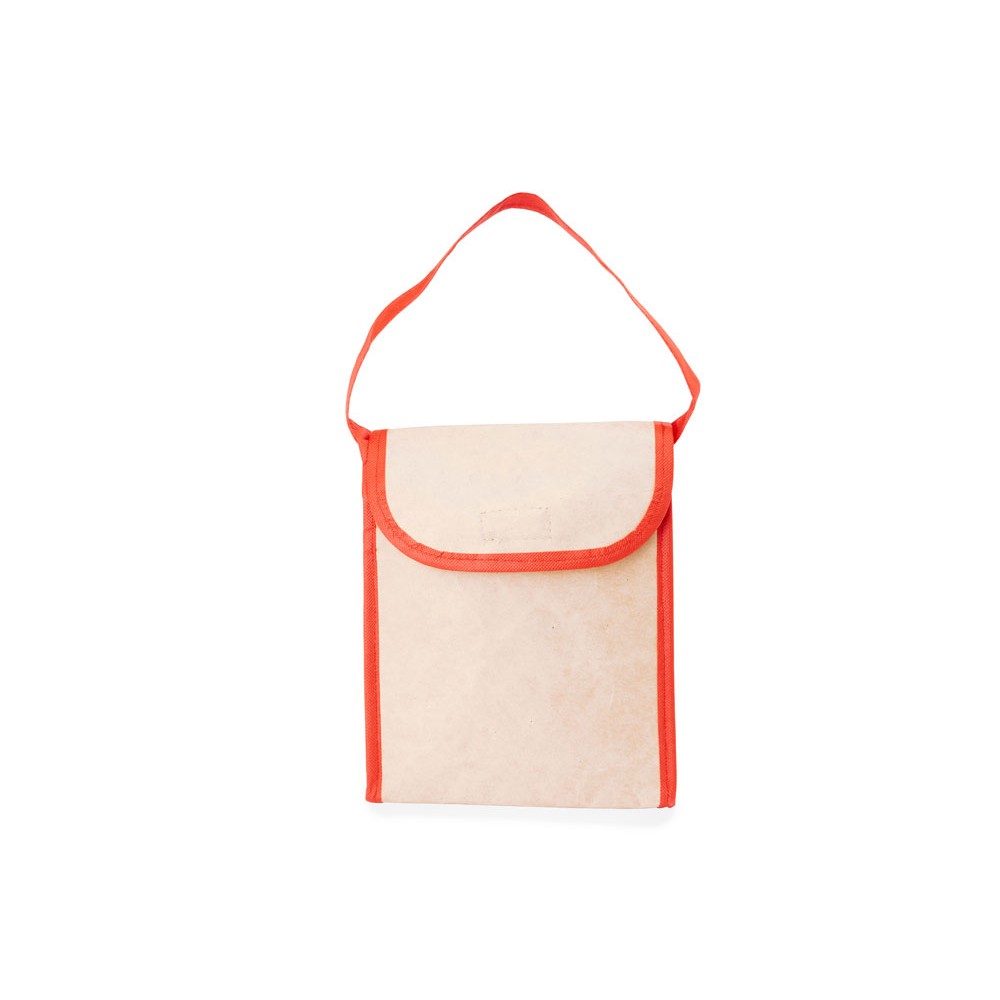 Сумка-холодильник из ламинированной бумаги с изотермической алюминиевой подкладкой и изоляционной пеной толщиной 2 мм. Ручка 60 см и клапан с застежкой-липучкой. Окантовка на сумке и ручке в тон