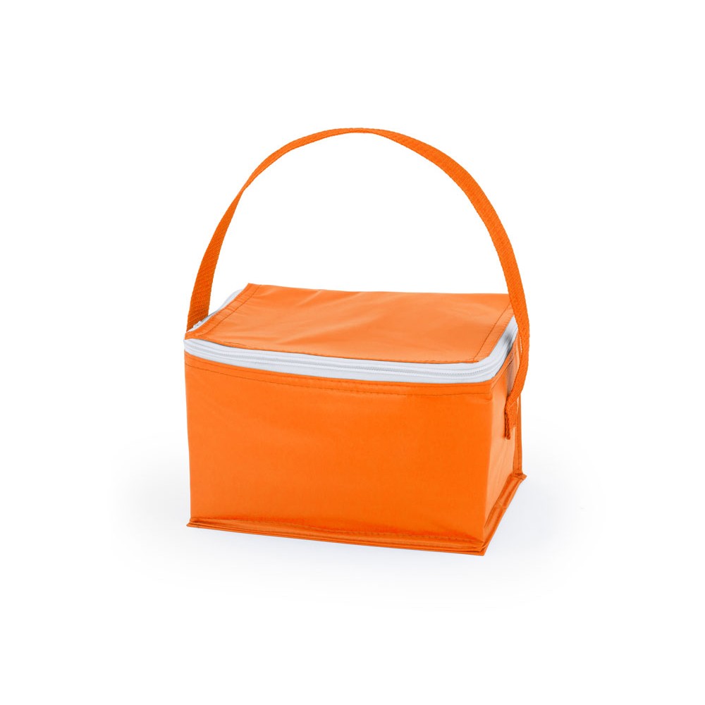 Сумка-холодильник с подкладкой из изотермического алюминия на 6 банок из ПВХ. Ручка для переноски и застежка-молния.