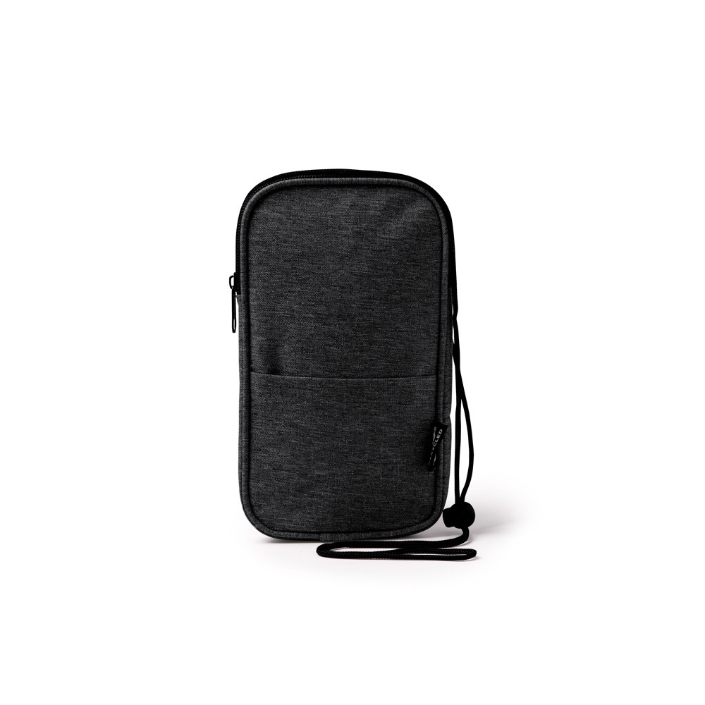Мобильный чехол из полиэстера RPET. Основное отделение с застежкой-молнией. Внешний карман. В комплект входит шнурок для переноски. Длина шнурка 122 см.