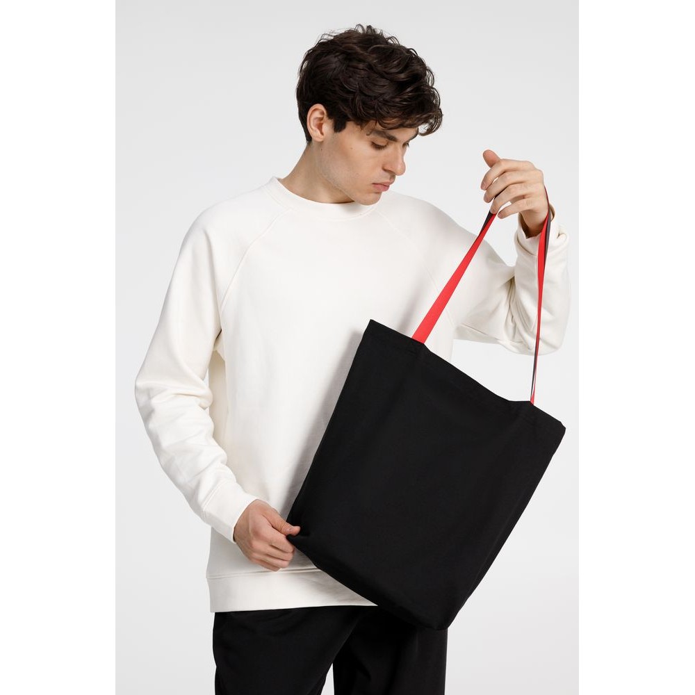 Базовый шопер разработан в рамках единой коллекции одежды и аксессуаров и легко комбинируется с ее элементами. Специально спроектированные лекала и технологии пошива открывают простор для любых вариантов кастомизации и нанесения изображений. На видимой части изделий нет лейблов с айдентикой бренда, а название бренда с уходника легко удалить.