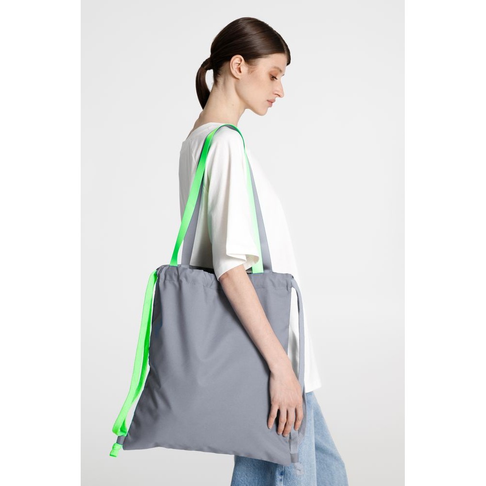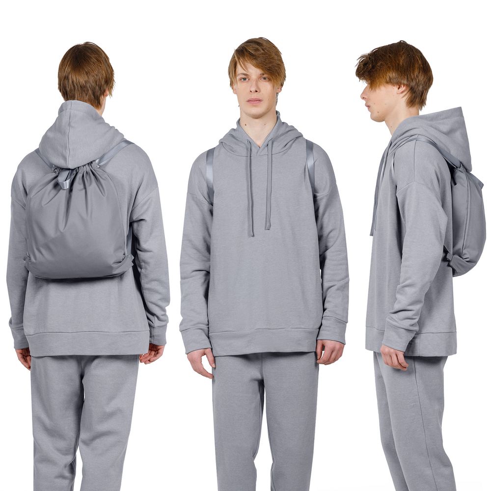 Прочный и вместительный трансформер — шопер и рюкзак на шнурках — разработан в рамках единой коллекции одежды и аксессуаров, поэтому легко комбинируется с ее элементами. Специально спроектированные лекала и технологии пошива открывают простор для любых вариантов кастомизации и нанесения изображений. На видимой части изделий нет лейблов с айдентикой бренда, а название бренда с уходника легко удалить.