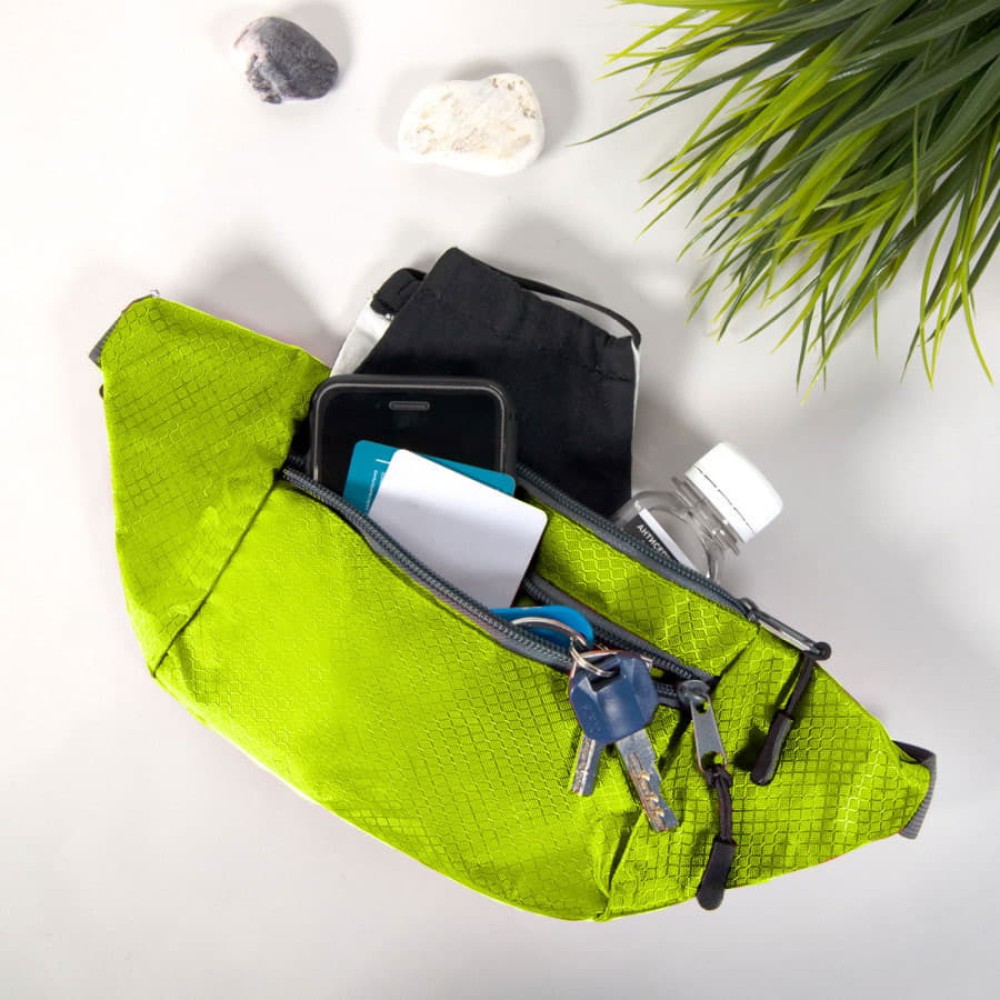 Поясная сумка из интересного материала рипстоп отлично подойдет для прогулок или занятий на свежем воздухе.