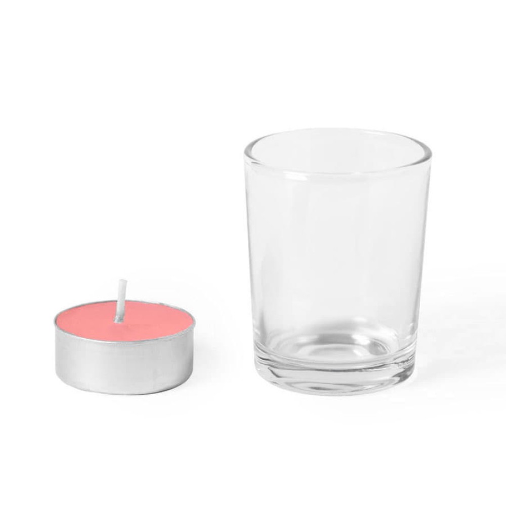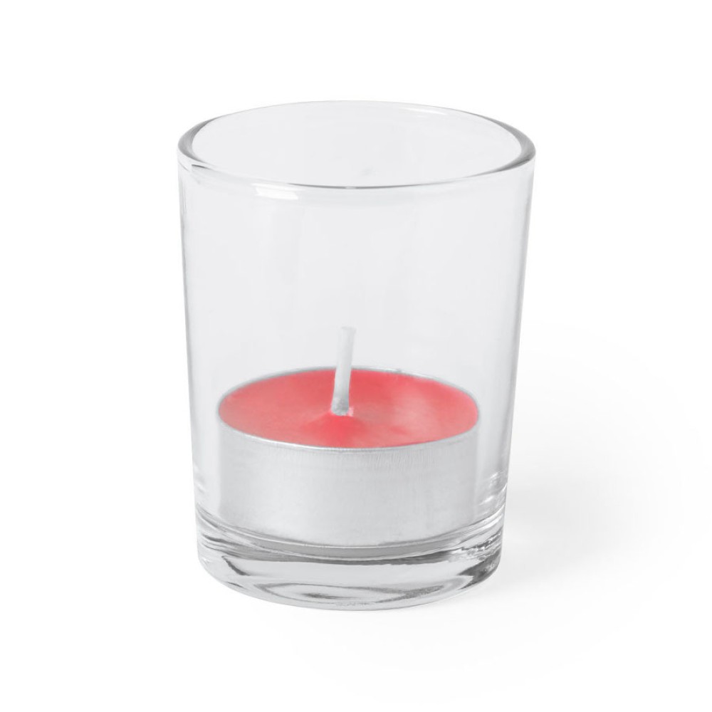 Свеча с ароматомклубники в стеклянном стаканчике.