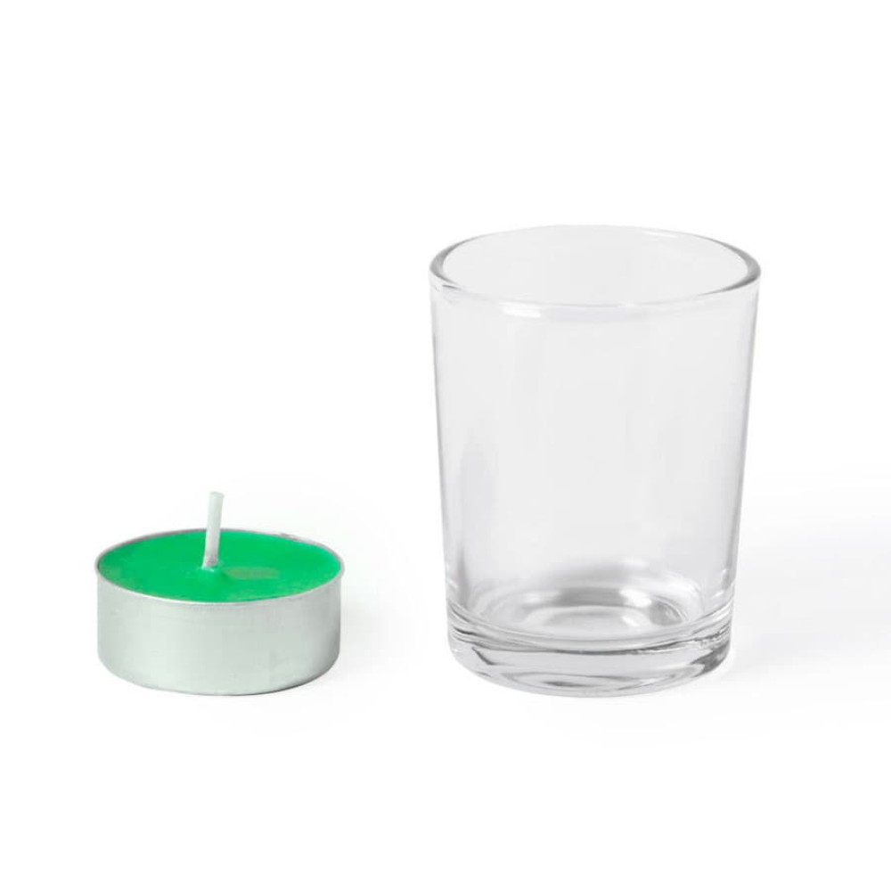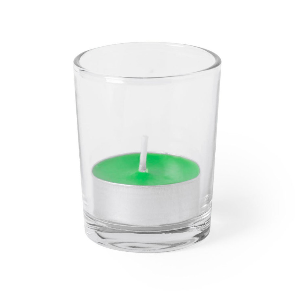 Свеча с ароматомяблока в стеклянном стаканчике.