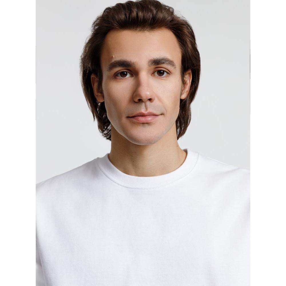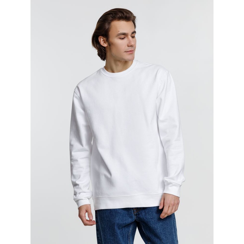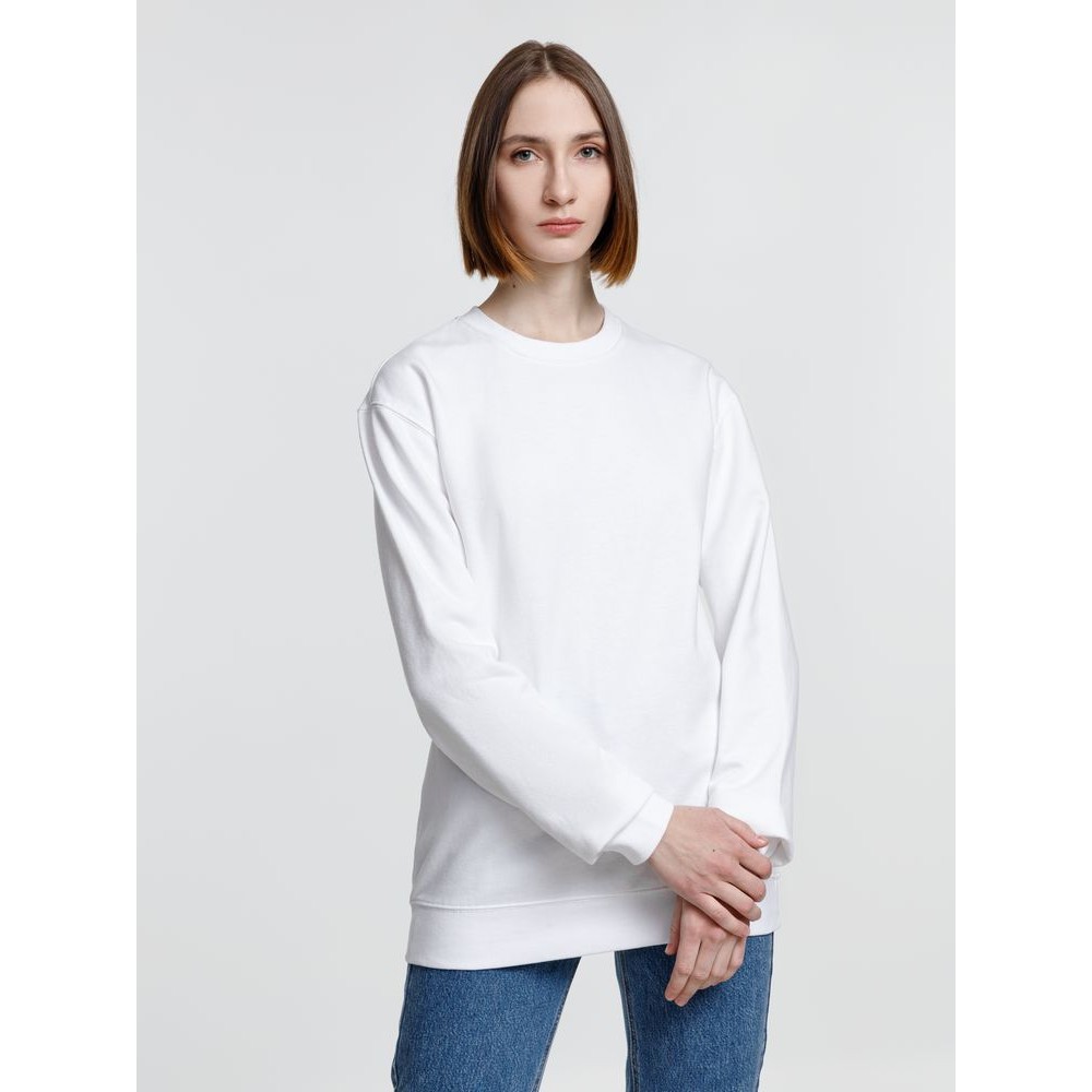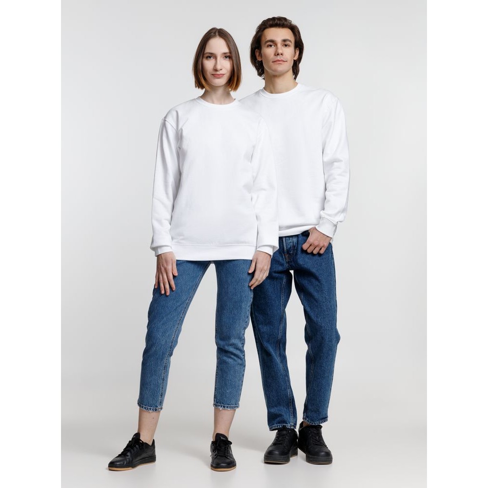 Свитшот унисекс из хлопка и переработанного полиэстера с круглым вырезом и втачным рукавом.