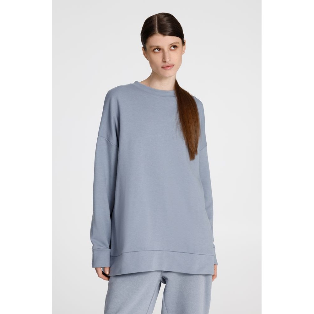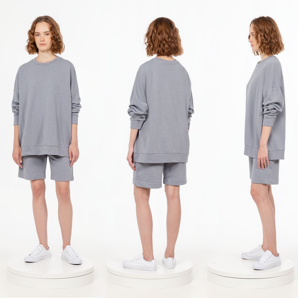 Свитшот унисекс свободной посадки со спущенным плечом.