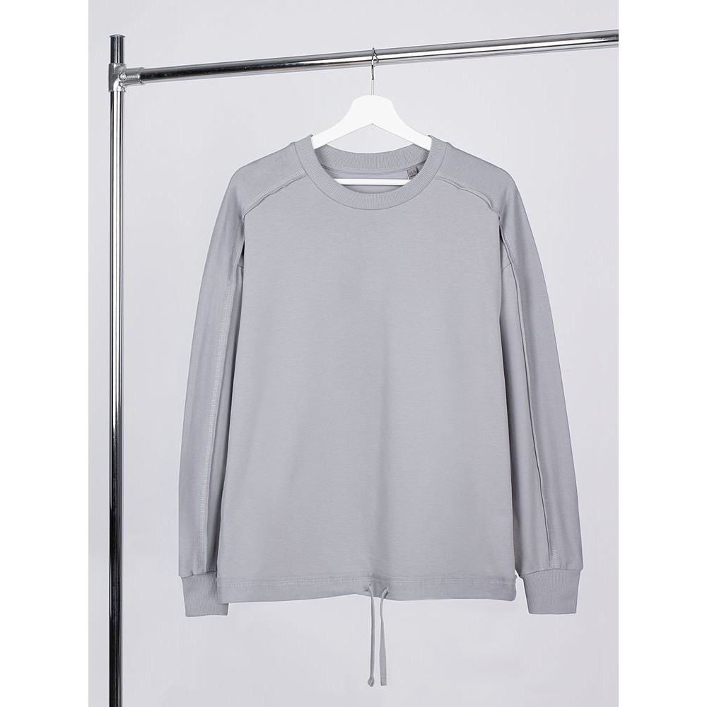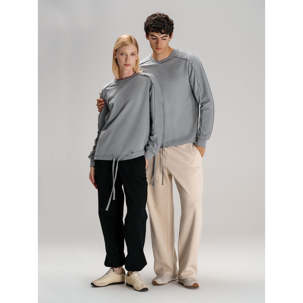 Свитшот унисекс оригинального пошива вдохнет новую жизнь в повседневный гардероб и добавит стильную нотку легкой небрежности в образ. Особая конструкция, где часть деталей — плечи и рукава — вывернута наизнанку, создает необычный притягательный эффект.