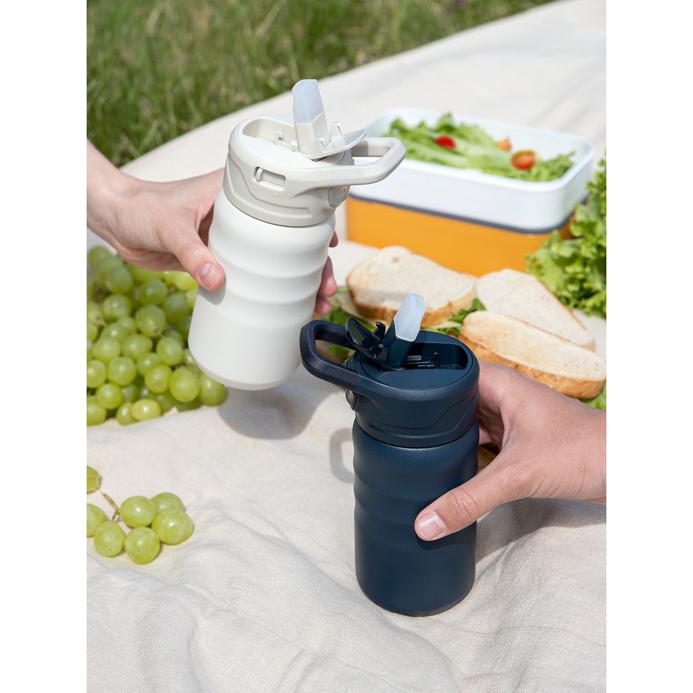 Fujisan — это термос, спортивная бутылка и термокружка одновременно. Две разные по функционалу и дизайну крышки, которые идут в комплекте, позволяют максимально удобно использовать компактный термос дома, на прогулке или в спортивном зале.