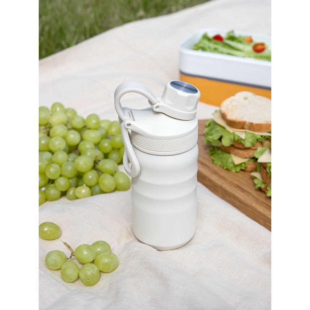 - Конструкция с двойными стенками и вакуумной изоляцией сохраняет содержимое холодным до 24 часов, горячим — до 12 часов