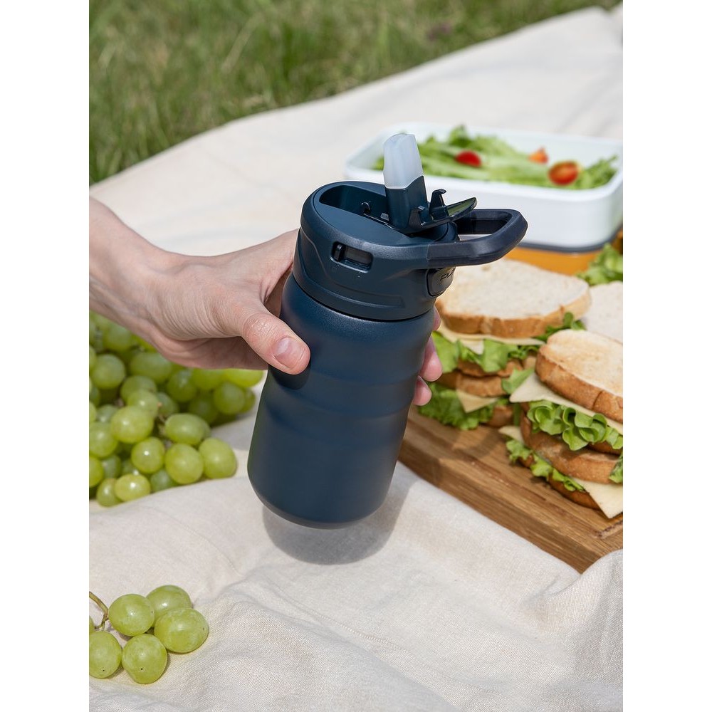Fujisan — это термос, спортивная бутылка и термокружка одновременно. Две разные по функционалу и дизайну крышки, которые идут в комплекте, позволяют максимально удобно использовать компактный термос дома, на прогулке или в спортивном зале.