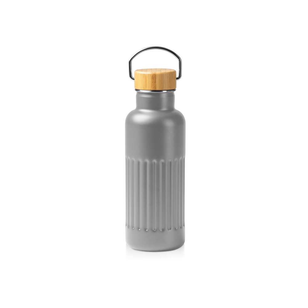Термобутылка Нобук из переработанной нержавеющей стали, с бамбуковой крышкой, серый