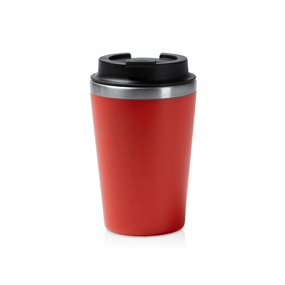 Термостакан с двойными стенками. Внутренняя часть выполнена из нержавеющей стали 304, внешняя — из полипропилена. Крышка винтовая с дозатором. Объём: 350 мл. Поставляется в дизайнерской коробке.