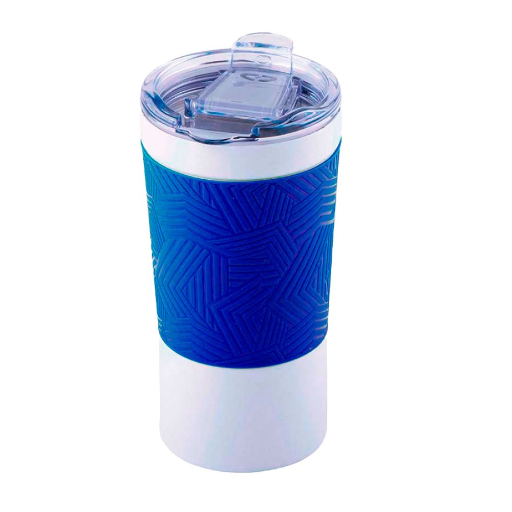 Вакуумная термокружка с покрытием "ice flower" и силиконовой манжетой.