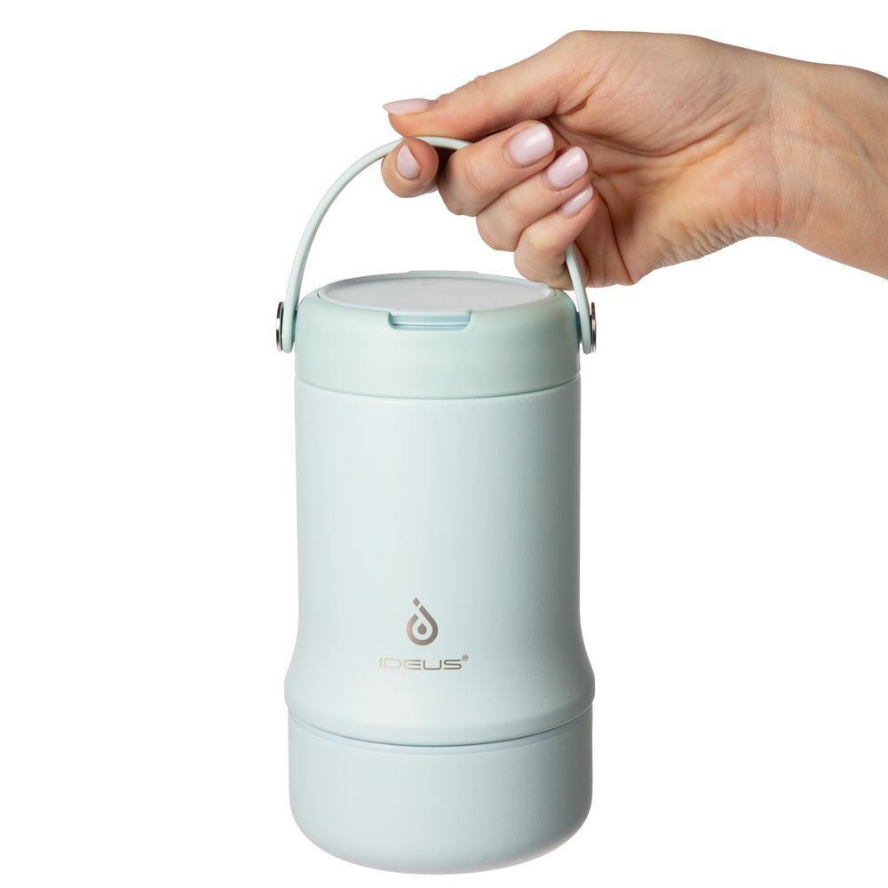 Tabenodo — универсальный многофункциональный термос для работы, школы, похода и путешествия. В компактном корпусе разместились ложка, тарелка и емкость для любимого блюда. Матовая поверхность приятна на ощупь, а силиконовая ручка удобна для переноски.