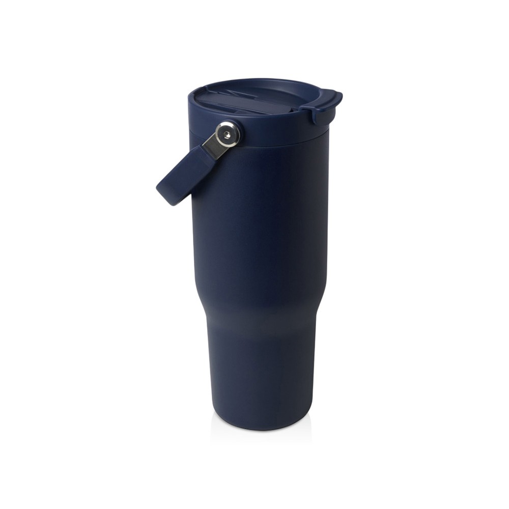 Термостакан Bronx объемом 900 мл из меди и переработанной нержавеющей стали, сертифицированной по стандарту RCS, с вакуумной изоляцией и крышкой с двойной функцией - Темно - синий