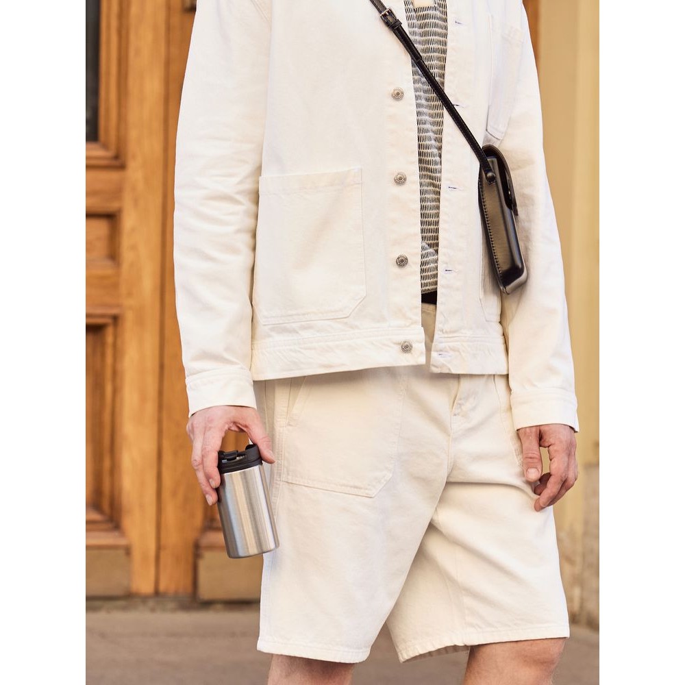 Двухслойная конструкция из пищевого пластика внутри и нержавеющей стали снаружи. Герметичная завинчивающаяся крышка с откидным клапаном для питья.