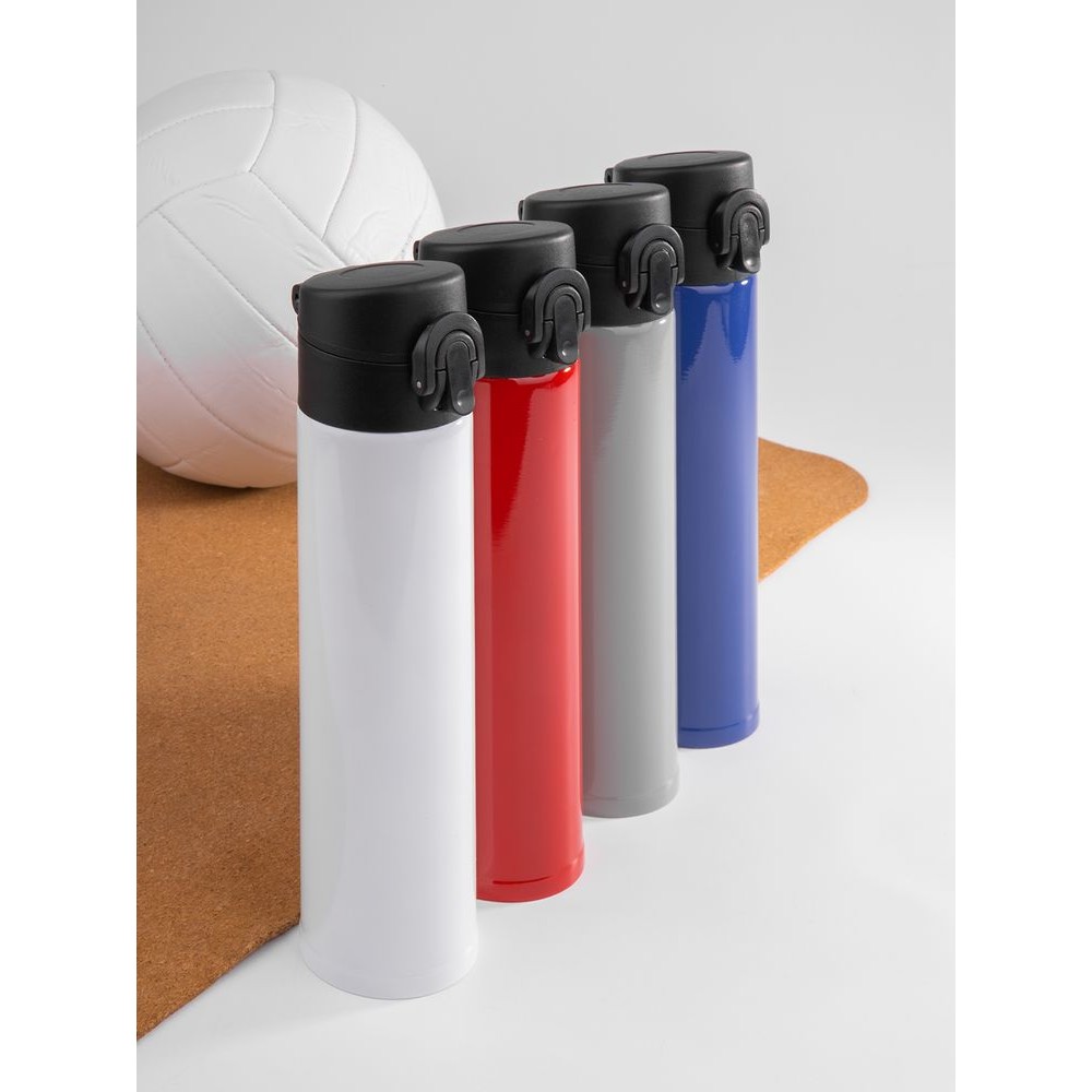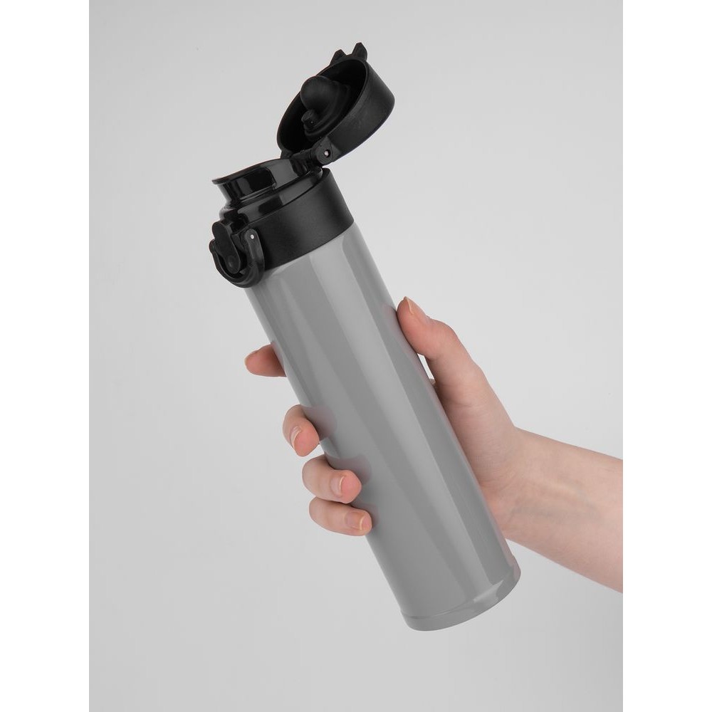 Термостакан Eimer в ровном цилиндрическом корпусе — эстетически приятная форма, на которую удобно делать круговое нанесение. Крышку с отщелкивающимся клапаном легко открыть одной рукой.