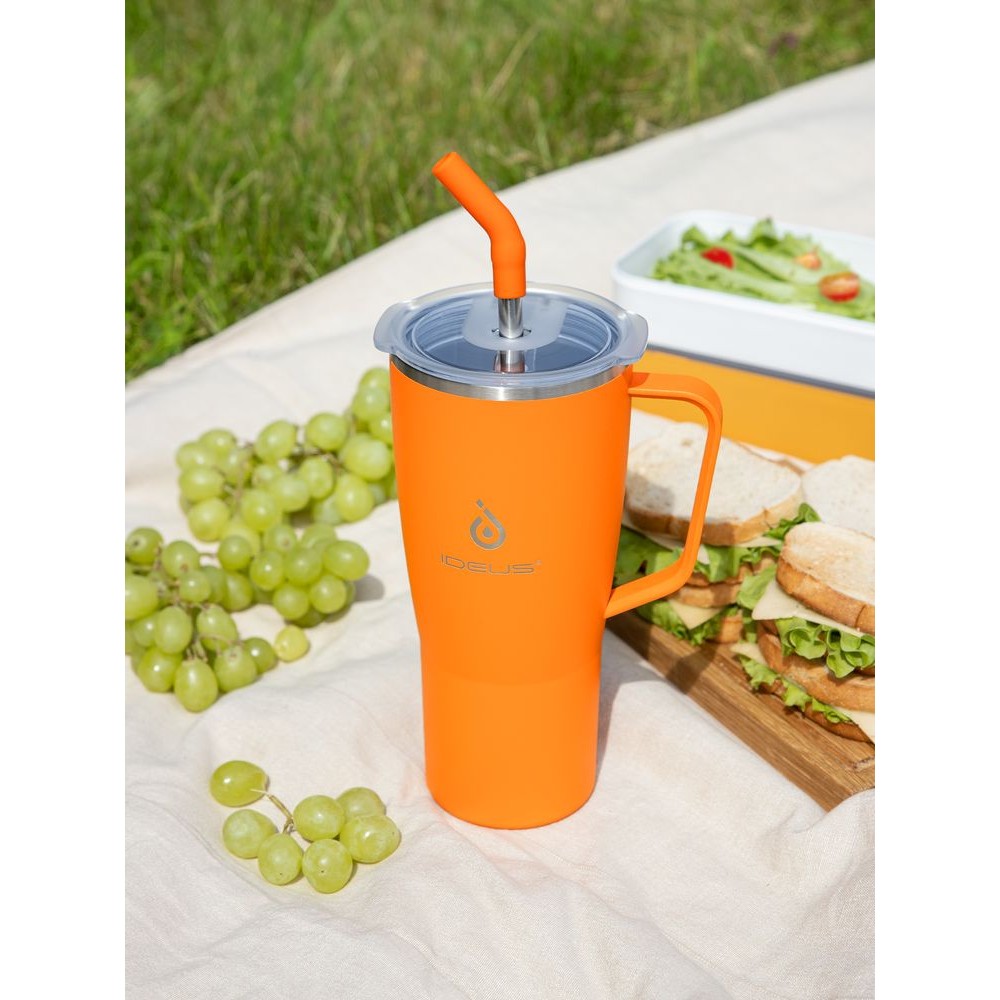 - 2 крышки в комплекте: одна на 100% герметичная с механизмом блокировки отверстия для питья, вторая — с отверстием для трубочки