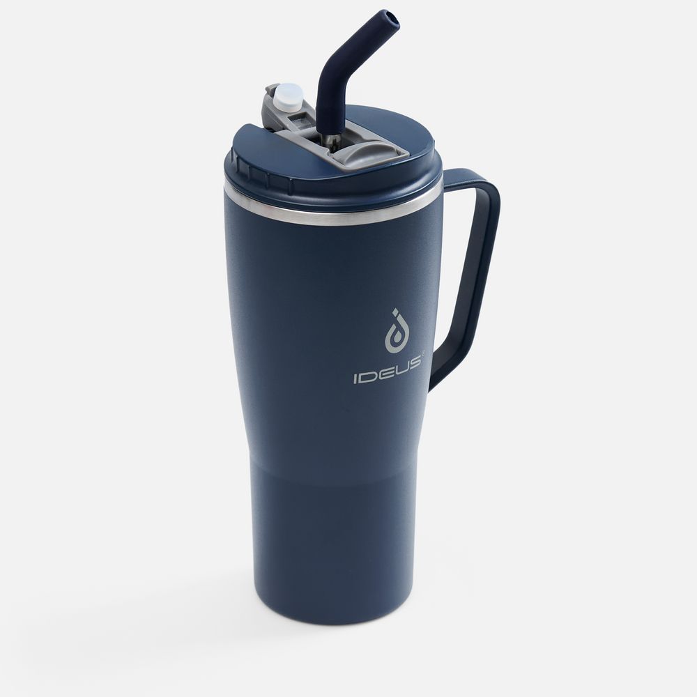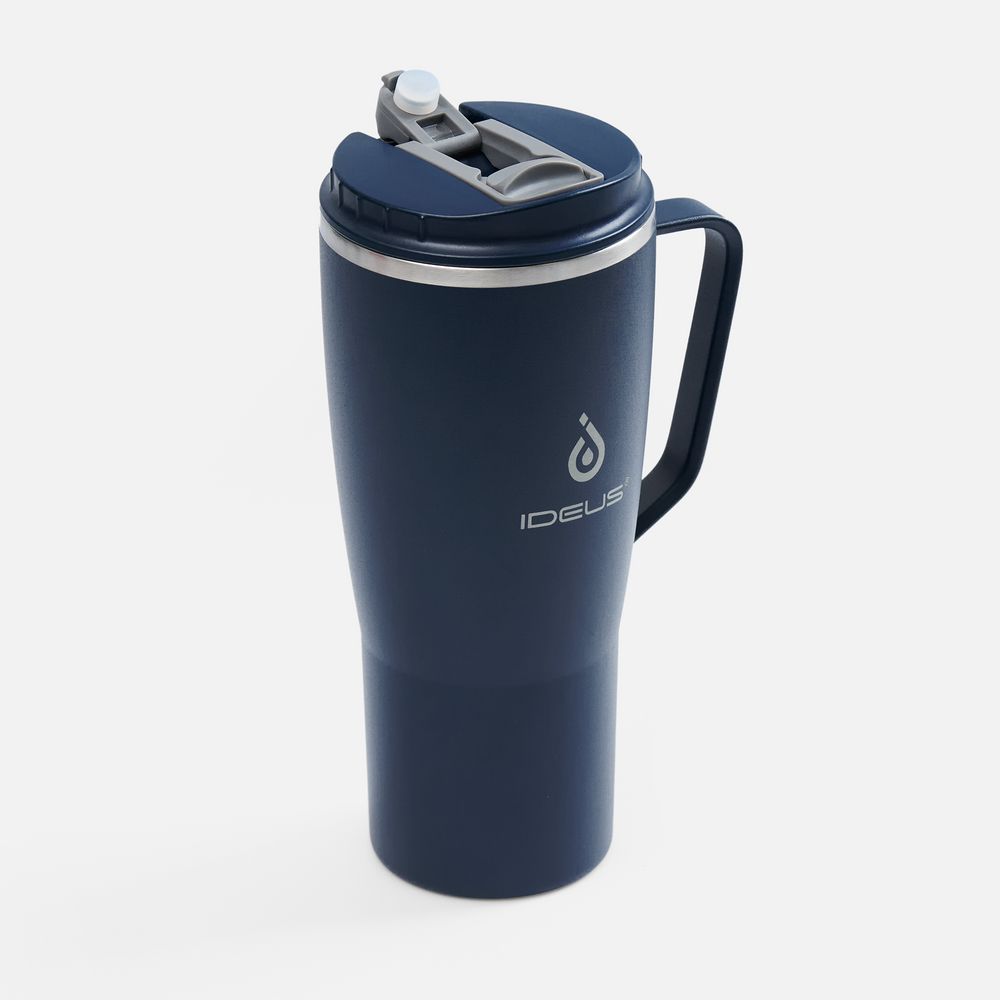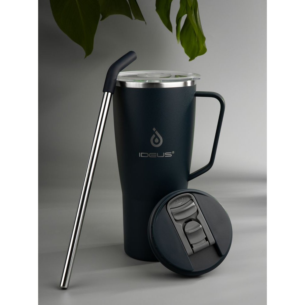 - 2 крышки в комплекте: одна на 100% герметичная с механизмом блокировки отверстия для питья, вторая — с отверстием для трубочки