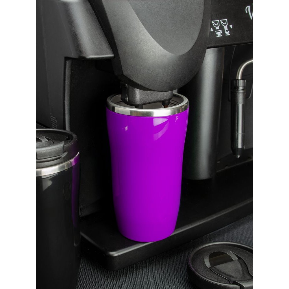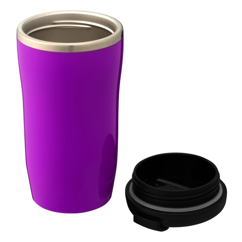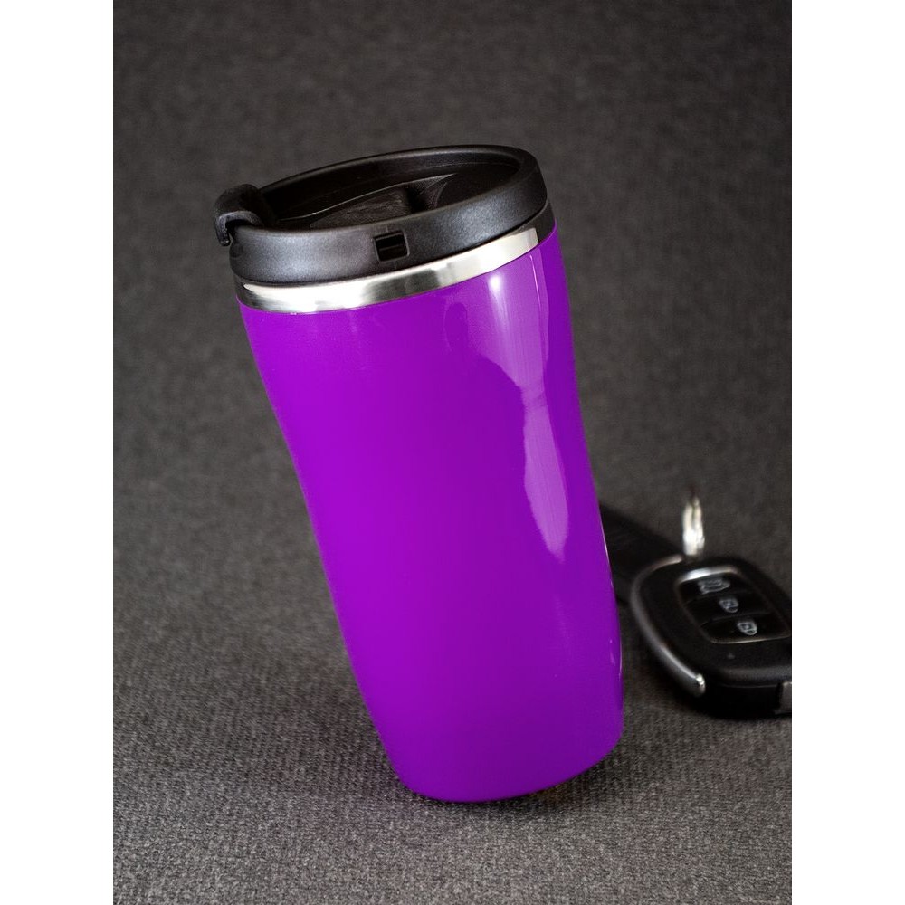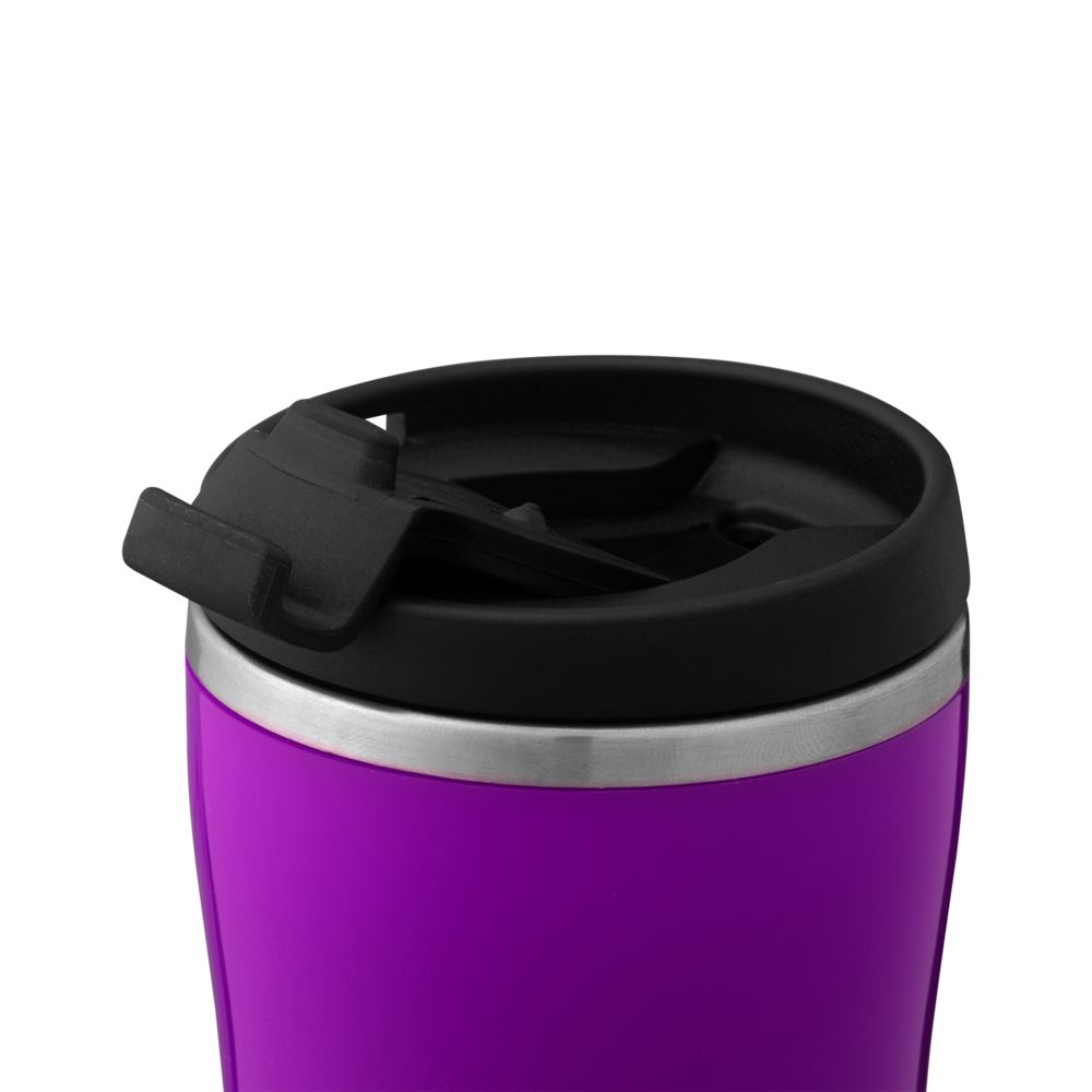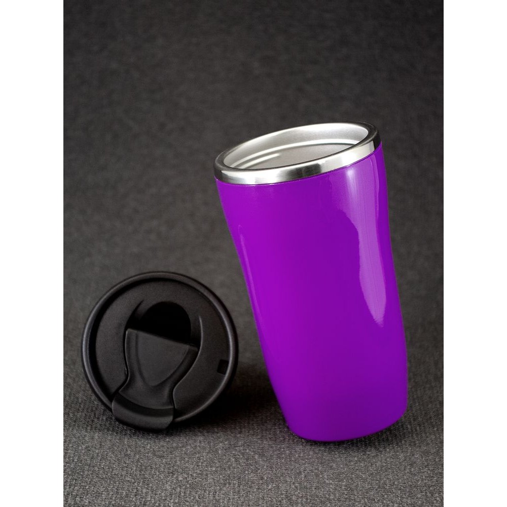 Двухслойная конструкция из пластика снаружи и пищевой нержавеющей стали внутри. Герметичная завинчивающаяся крышка с откидным клапаном для питья. В отверстие в крышке можно вставить шнурок для удобного ношения стакана на руке. Шнурок в комплект не входит.