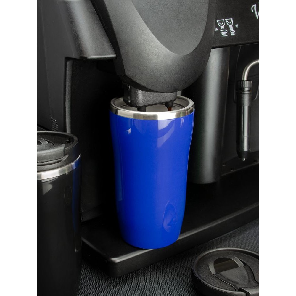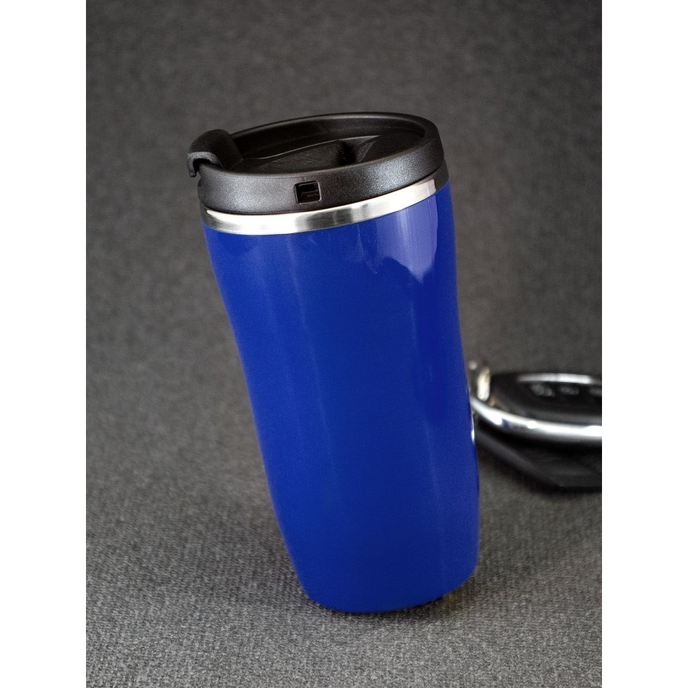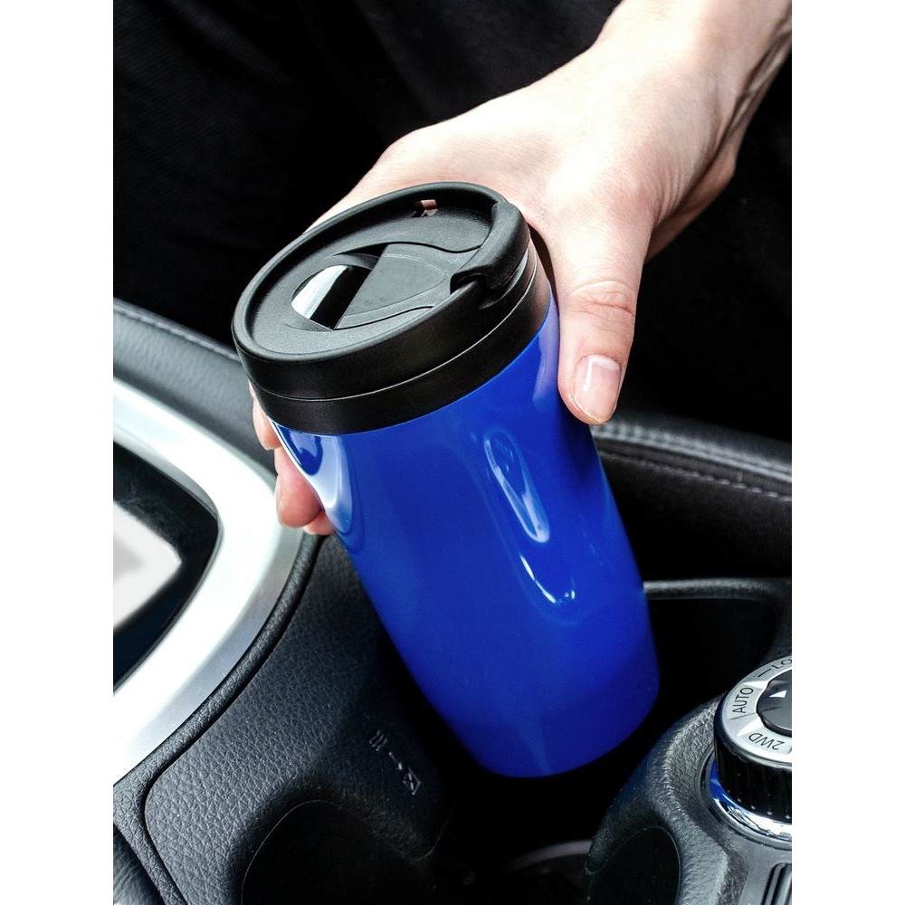 Двухслойная конструкция из пластика снаружи и пищевой нержавеющей стали внутри. Герметичная завинчивающаяся крышка с откидным клапаном для питья. В отверстие в крышке можно вставить шнурок для удобного ношения стакана на руке. Шнурок в комплект не входит.