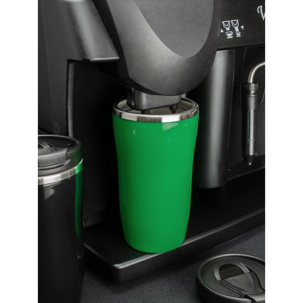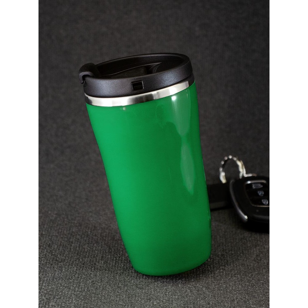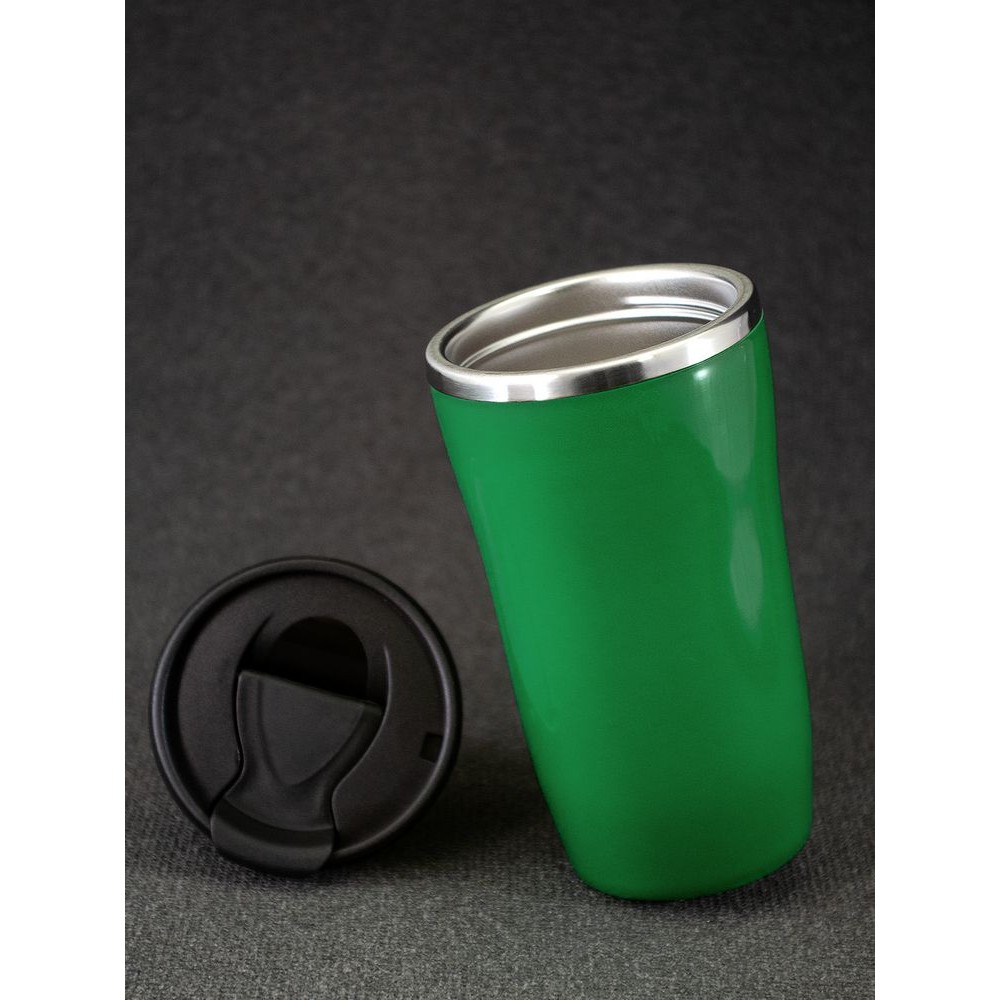 Двухслойная конструкция из пластика снаружи и пищевой нержавеющей стали внутри. Герметичная завинчивающаяся крышка с откидным клапаном для питья. В отверстие в крышке можно вставить шнурок для удобного ношения стакана на руке. Шнурок в комплект не входит.