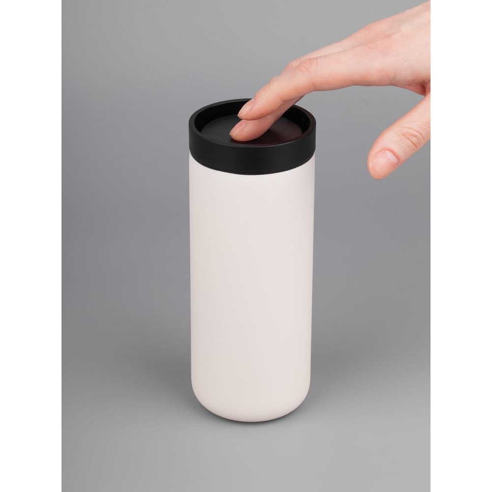 Лаконичный термостакан с удобным клапаном, который открывается и закрывается одним нажатием, — и пить можно с любой стороны.
