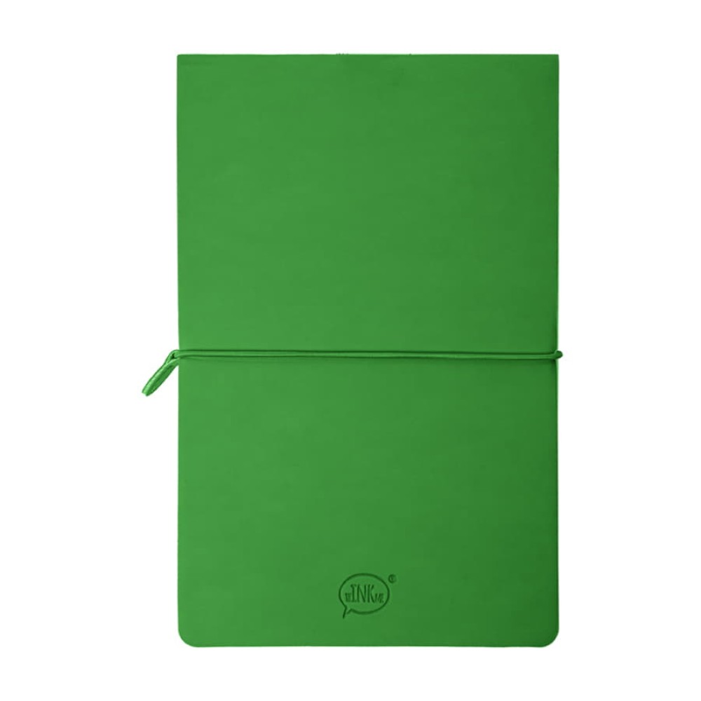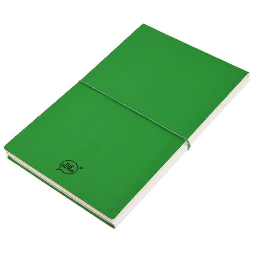 с оборотной стороны - яркий PU Silk Plus (цвет, близкий к pantone 355C). - два разных внутренних блока по 96 страниц соединены пододной обложкой: