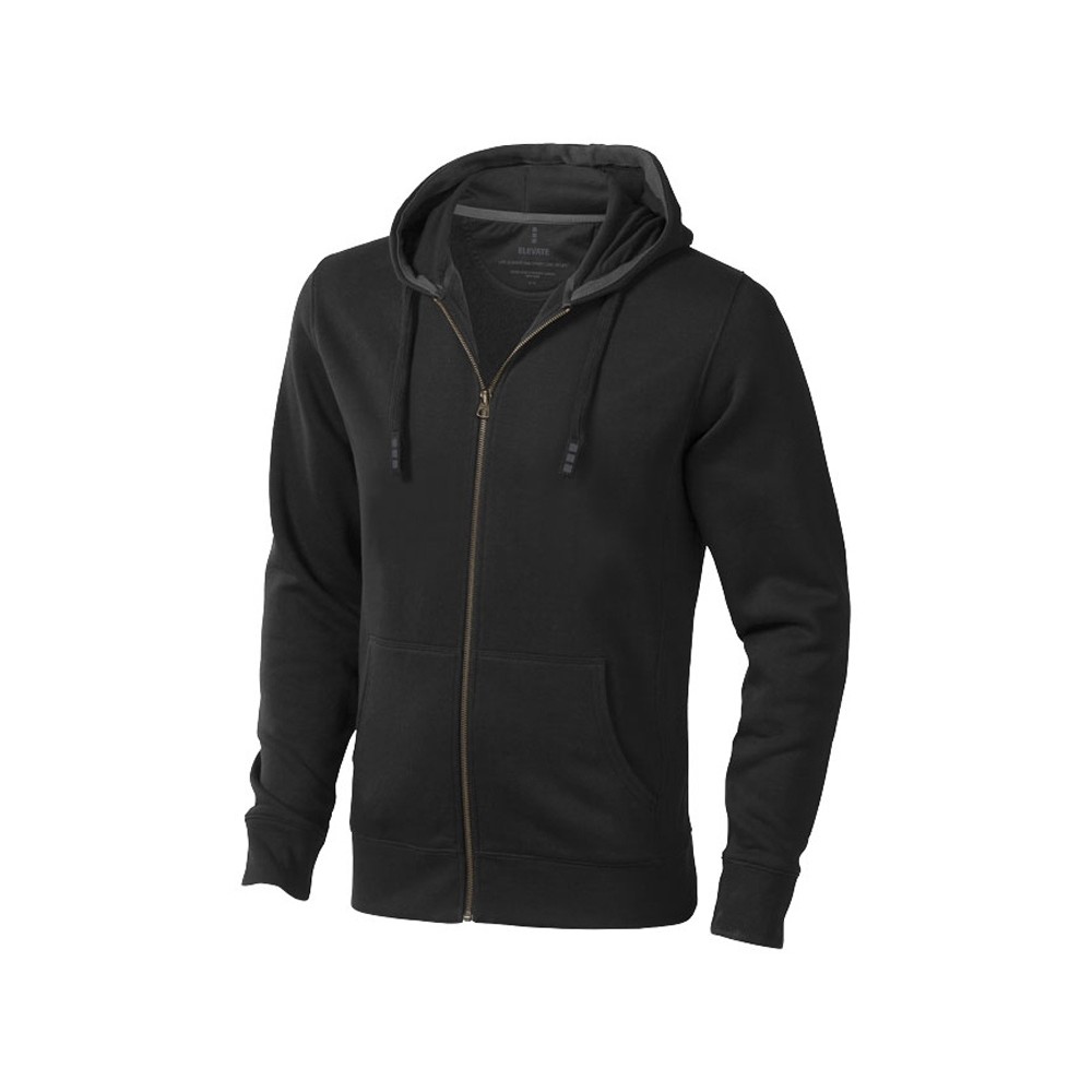 Свитер Arora с капюшоном и застежкой-молнией на всю длину. Стандартный покрой. Резинка 2х2 на боковых вставках, поясе и манжетах. Карман кенгуру. Мужская и женская модели с завязками на капюшоне. Подкладка внутри капюшона. Подкладка на полумесяце. Атласная лента внутри горловины. Принт лого сзади в тон изделия. Серебристые люверсы с лого. Трикотаж: 80% хлопок и 20% полиэстер, чесаная внутренняя сторона. 300 г/м².