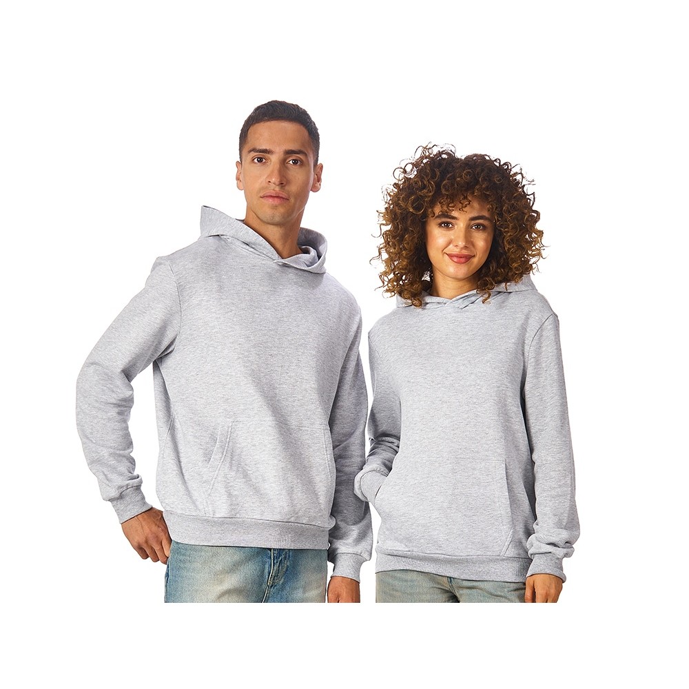 Толстовка с капюшоном (худи) из плотного хлопкового 3х ниточного футера. В капюшоне подкладка в тон, а горловина спинки дополнительно укреплена тесьмой с выделкой елочка. Капюшон без шнурков – ничего не отвлекает от вашего брендирования. Манжеты и низ изделия отделаны рибом 2х2. Глубокий комфортный карман кенгуру на полочке. Полотно из утяжеленного хлопкового футера внутри с петельками без начеса.