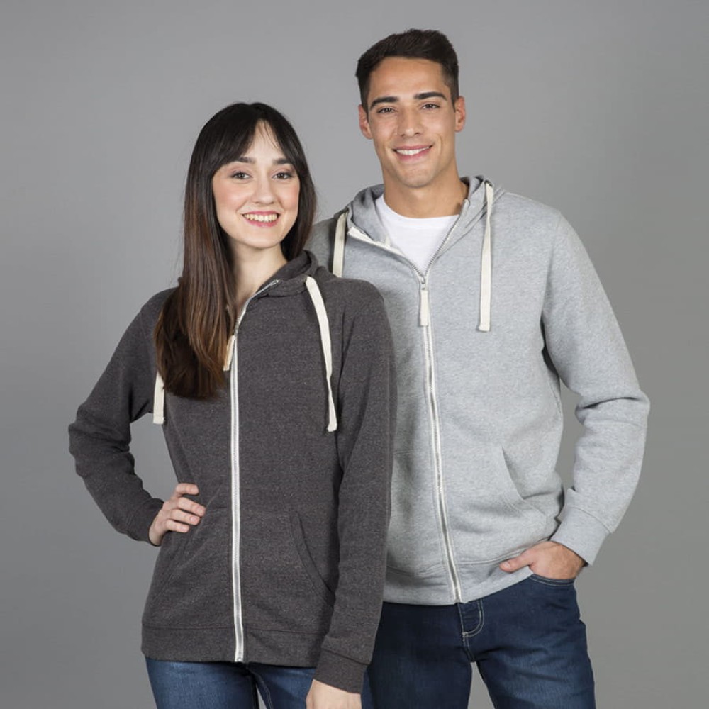 Основная ткань: цвет, близкий к Pantone 5395 U Толстовка с эффектом "меланж". Облегченная пластиковая молния с контрастной тканевой лентой. Капюшон с небольшой стойкой и плоским вытяжным шнуром. Манжеты и низ изделия обработаны рибом 1*1.